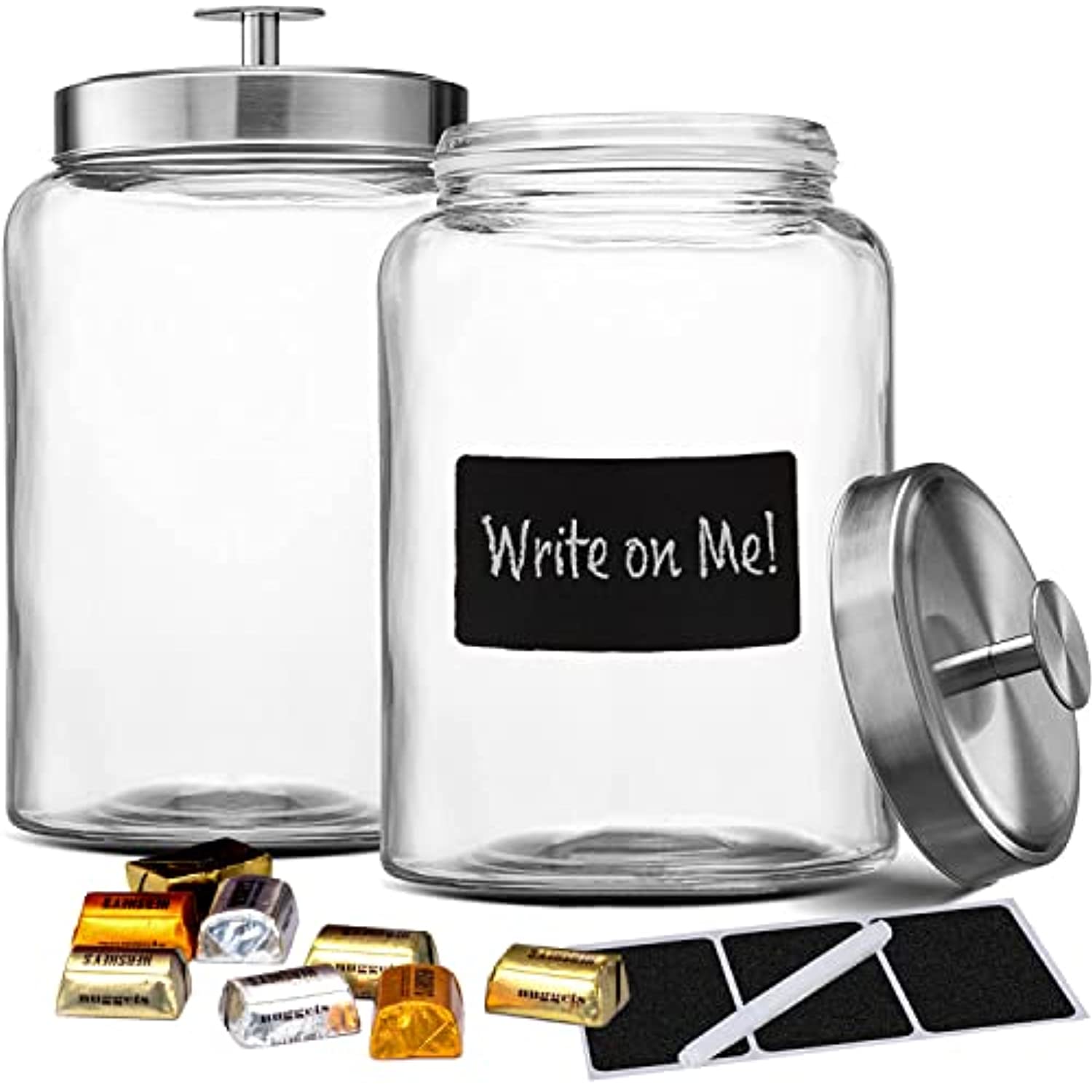 2 1-Gallon Glass Jars with Stainless Steel Airtight Lids + Marker & Labels, Cookie Jar & Candy Jar for Buffet, Coffee & Flour Canister Sets for Kitchen Counter, Laundry Room Storage & Pantry