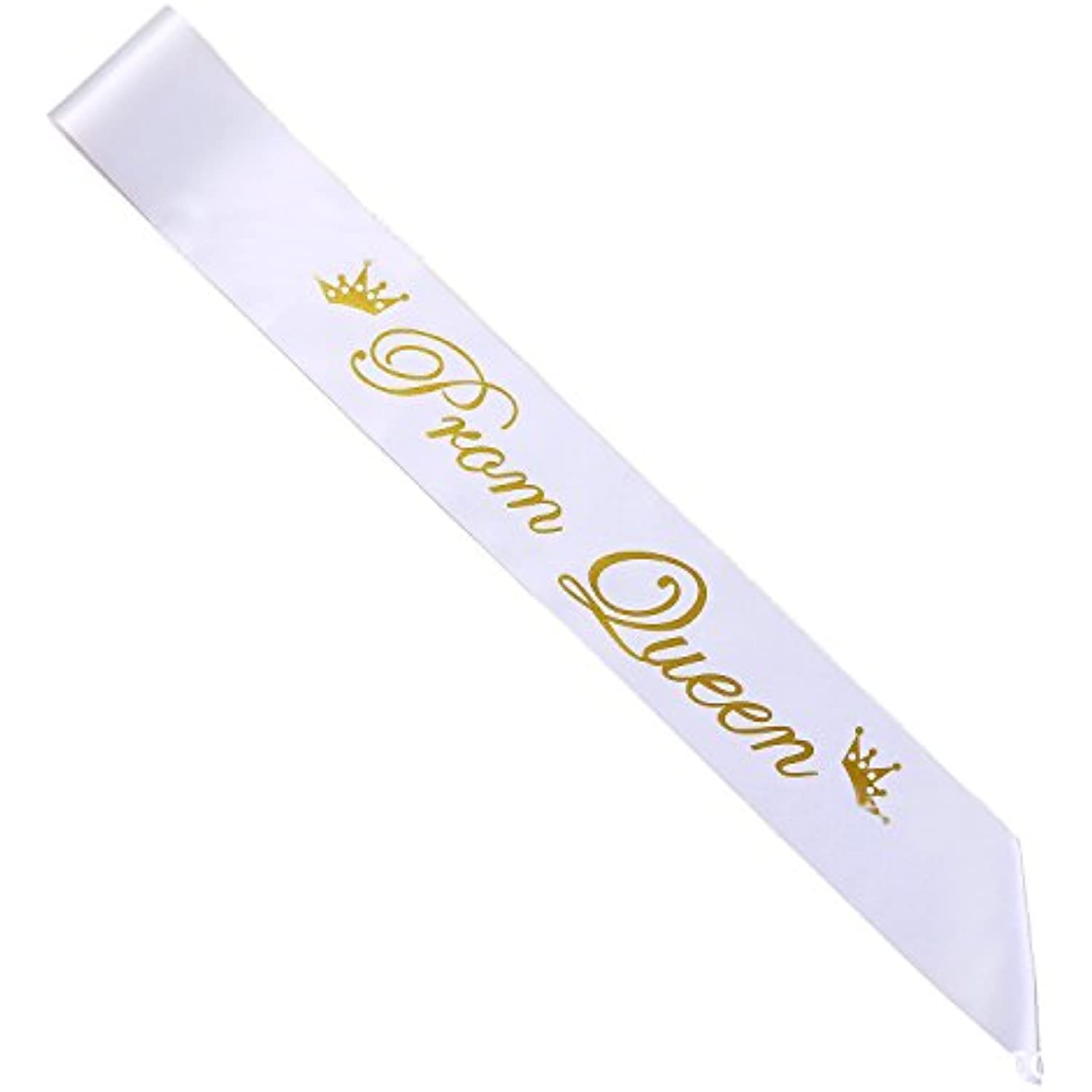 What You Get: 1 Prom King and 1 Prom Queen satin sash with pins. HIGH QUALITY: These prom sashes set is suitable for proms,hen party,wedding,birthday,fancy dress,graduation party and more,good way to express a compliment and make you charming and attractive. ONE SIZE FIT MOST : Each sash measures approx.80cm/30.7inches in length and 10cm/3.9inches in width, normal size for most men and women. OCCASION: These prom sashes set is suitable for proms, hen party, fancy dress, graduation party and more, good way to express a compliment and make you charming and attractive. QUALITY WITH A GUARANTEE: We support 30-Day Money Back and 24-Hours Customer if you are not satisfied in any reason with our prom sash.