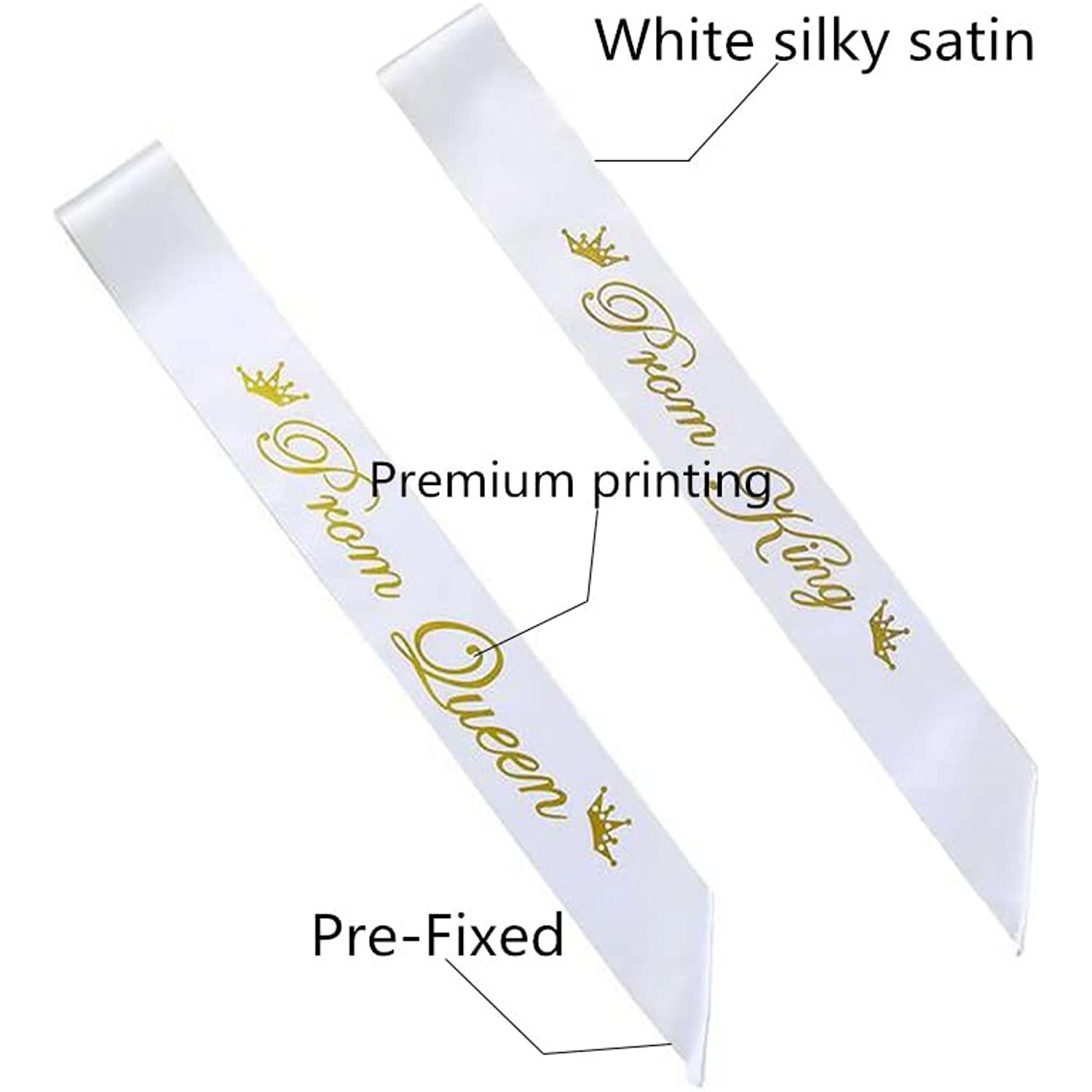 2 Pack Prom King and Prom Queen Satin Sash Kit School Graduate Party Décor Accessories