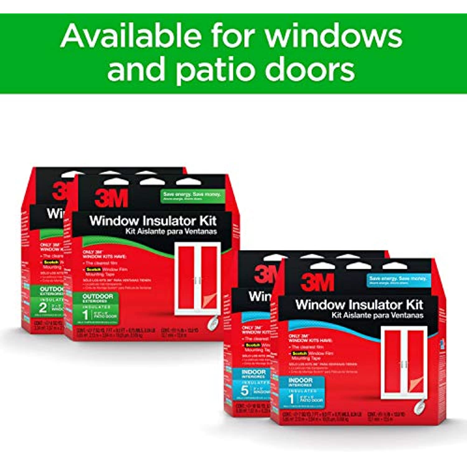 Product Description The 3M Outdoor Window Insulator Kit, will help protect your home from the cold. It keeps chilly drafts out and warm air in through its heat shrink window film. The kit includes Two-Sided Scotch Window Film Mounting Tape to position the film securely. Installation is quick and easy. The 3M window insulator kit has exceptionally clear film and stays up all season long with Scotch tape technology. Because it reduces condensation, you'll be able to see what is outside. The 3M window kit also prevents frost build-up. This quality product not only wraps your house in warmth. It helps you save energy, by reducing expensive heating costs. 3M is well-known for creating innovative products and this item lives up to their reputation. The practical accessory is available in a variety of outdoor and indoor window sizes. Make sure your family stays toasty when cold weather comes with the 3M Outdoor Window Insulator Kit. Amazon.com With the 3M outdoor window insulator kit, you can lower your heating bills during the winter and make your home more energy-efficient. Part of 3M's line of energy-saving products, this kit includes window insulation film and a roll of double-sided mounting tape to create an airtight seal. Stretching the film removes wrinkles for a transparent view. This version of the 3M outdoor window insulator kit enables you to insulate two 3-foot-by-5-foot windows.Keep the Heat In and the Cold Out Made by 3M, this outdoor window insulator kit contains window insulation film along with Scotch Window Film Tape to keep cold drafts out and warm air in. As a result, you can reduce your heating costs during the winter. The film shrinks tightly around your window for a transparent, wrinkle-free fit and is made to reduce condensation and prevent frost build-up.Double-Sided Mounting Tape for a Secure Seal Included with this kit is a 1/2-inch-by-13-4/5-yard roll of 3M window film mounting tape to keep your insulation in place all season long. This double-sided tape seals off cracks and crevices, creates an airtight seal, and establishes a strong bond between the surface, the tape, and the insulation film, as recommended in ENERGY STAR's "Seal and Insulate" guidelines. Featuring a convenient, ready-to-peel liner, the tape adheres easily to a variety of surfaces and stays intact upon removal.Simple, Fast Installation Installing the window insulation is easy. You simply unfold the film and cut it to the width of the window, allowing an extra inch on all sides. Next, you firmly apply the mounting tape around the window frame and remove the paper liner. Then you apply the film to the tape, starting at the top of the window, and reposition and stretch the film to remove wrinkles. Finally, you press the film firmly to the tape and trim any excess film.Made in the United States, and designed for outdoor use only, this insulator kit can be used with aluminum, painted wood, or vinyl-clad surfaces, but it should not be applied to masonry or to roughly sawn or unpainted wood. The film and tape should be removed from the window at the end of the season. The film measures 4 square yards, or 5.16 feet by 7 feet by 0.75 thousandths of an inch (H x W x D), and weighs 0.13 pounds.What's in the Box Window insulation film and one roll of mounting tape. From the Manufacturer Specially developed 3M tape and film system for outdoor use. Clear as glass insulating film installs easily from the outside. Stretches drum tight and wrinkle free. Fights air infiltration and adds an extra pane of insulation, preventing frosty windows. Special weather resistant double stick tape included.