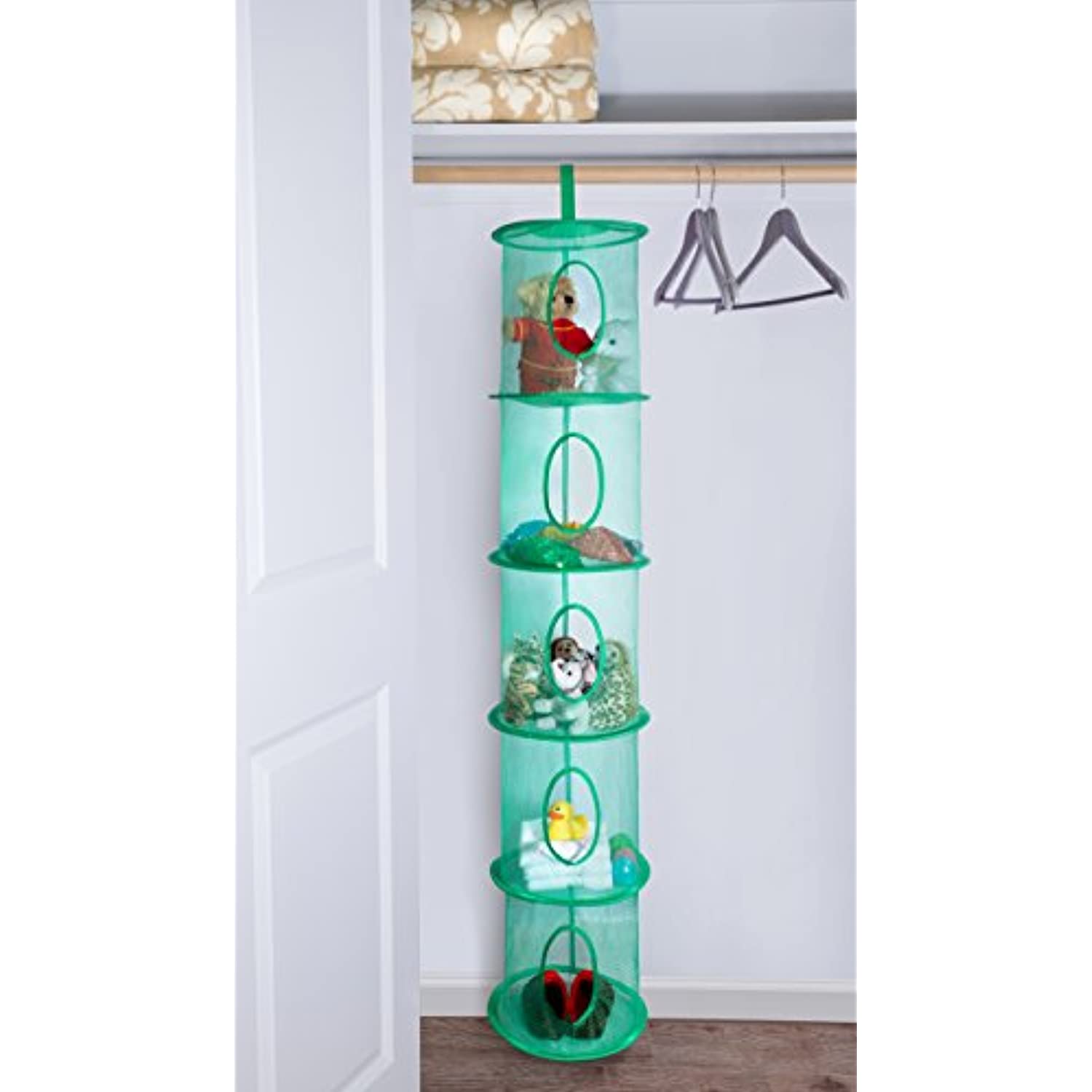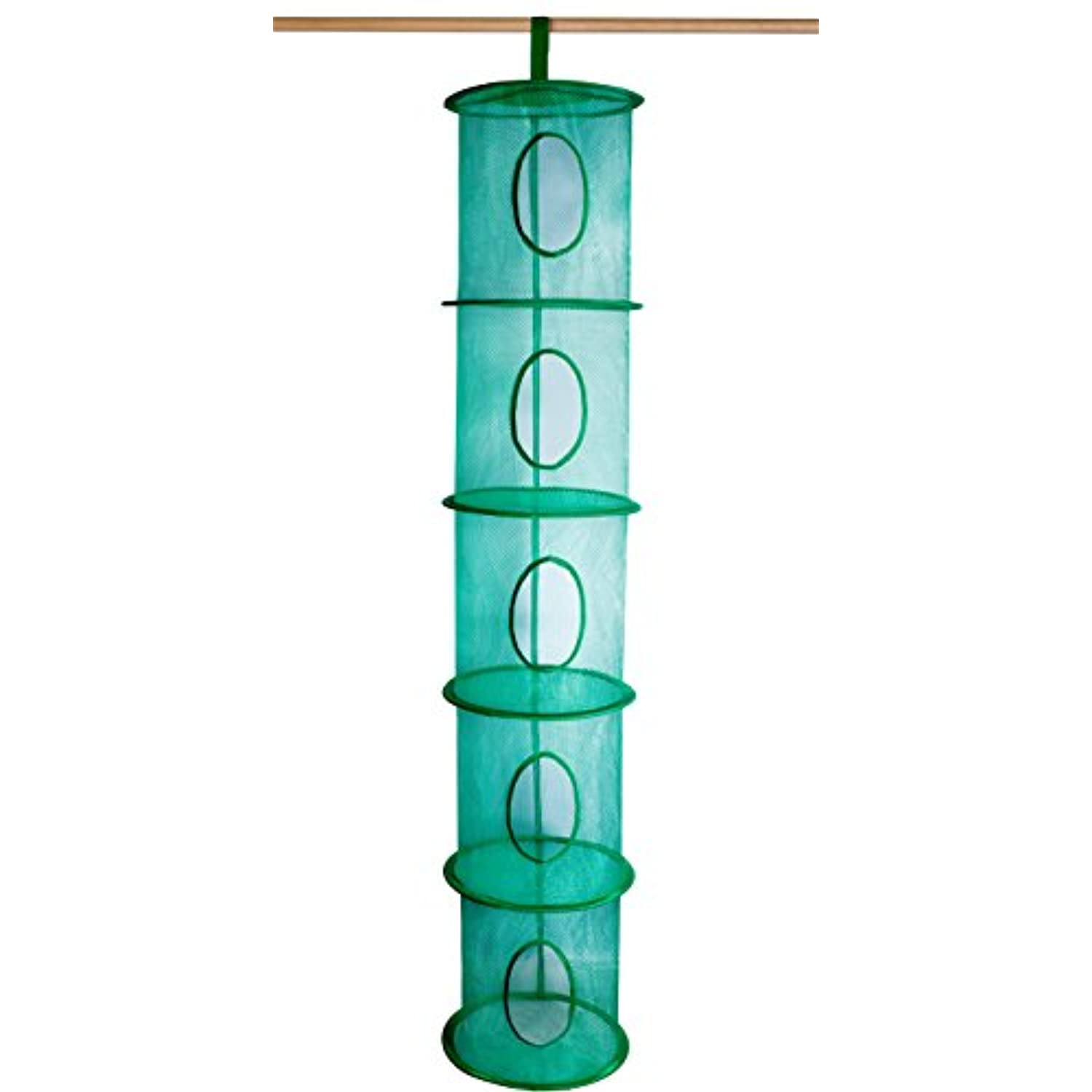 5 Tier Storage Organizer - 12" X 59" - Hang in Your Children’s Room or Closet for a Fun Way to Organize Kids Toys or Store Gloves, Shawls, Hats and Mittens. Attaches Easily to Any Rod. (Green)