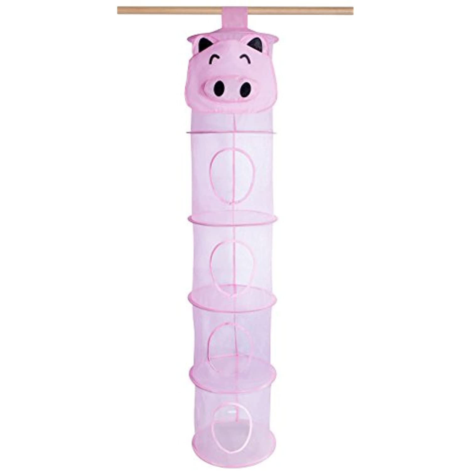 5 Tier Storage Organizer - 12" X 59" - Hang in Your Children’s Room or Closet for a Fun Way to Organize Kids Toys or Store Gloves, Shawls, Hats and Mittens. Attaches Easily to Any Rod. (Pig)