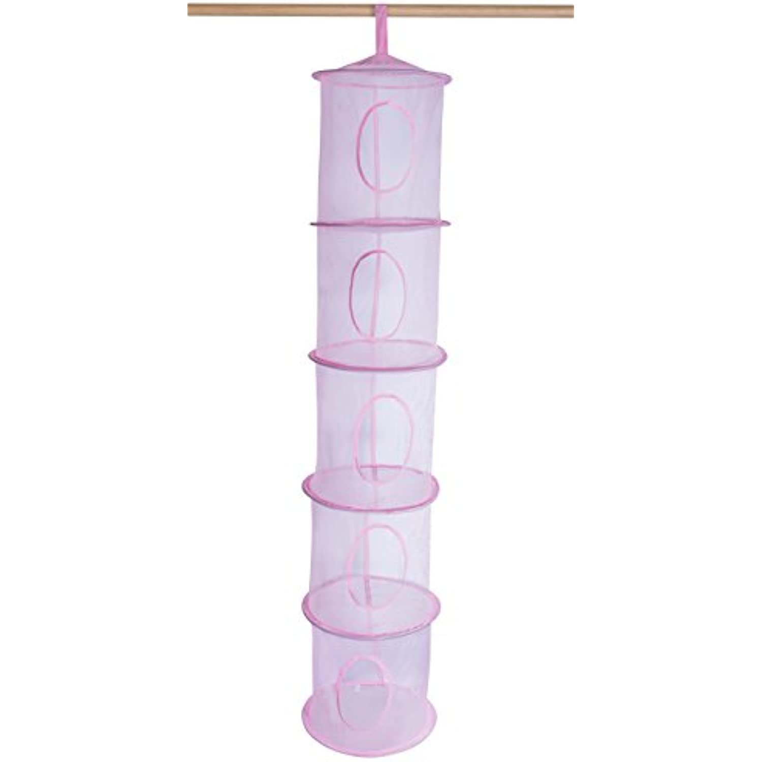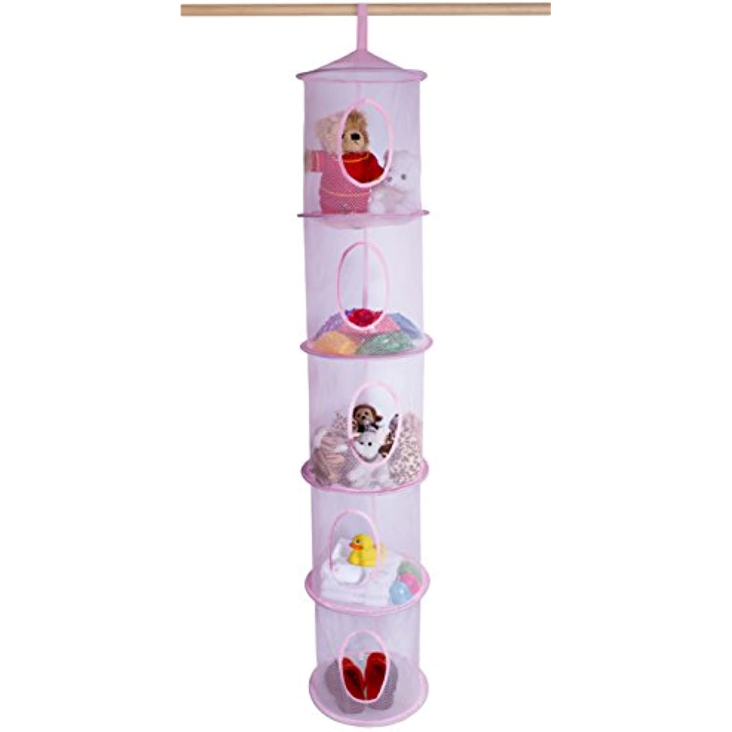 5 Tier Storage Organizer - 12" X 59" - Hang in Your Children’s Room or Closet for a Fun Way to Organize Kids Toys or Store Gloves, Shawls, Hats and Mittens. Attaches Easily to Any Rod. (Pink)