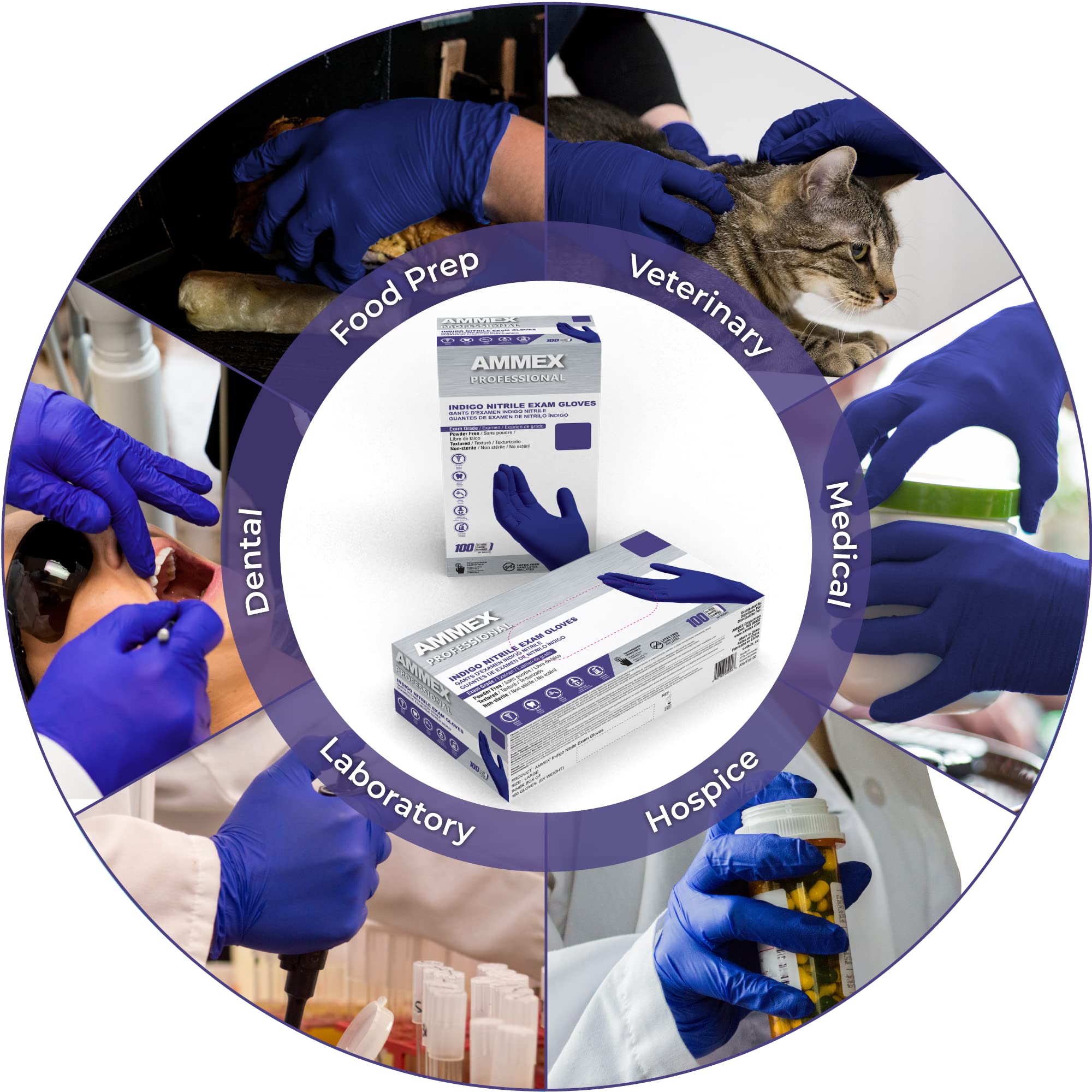 AMMEX Indigo Nitrile Disposable Exam Gloves, 3 Mil, Latex & Powder Free, Food-Safe, Textured, Non-Sterile, Medium, Box of 100