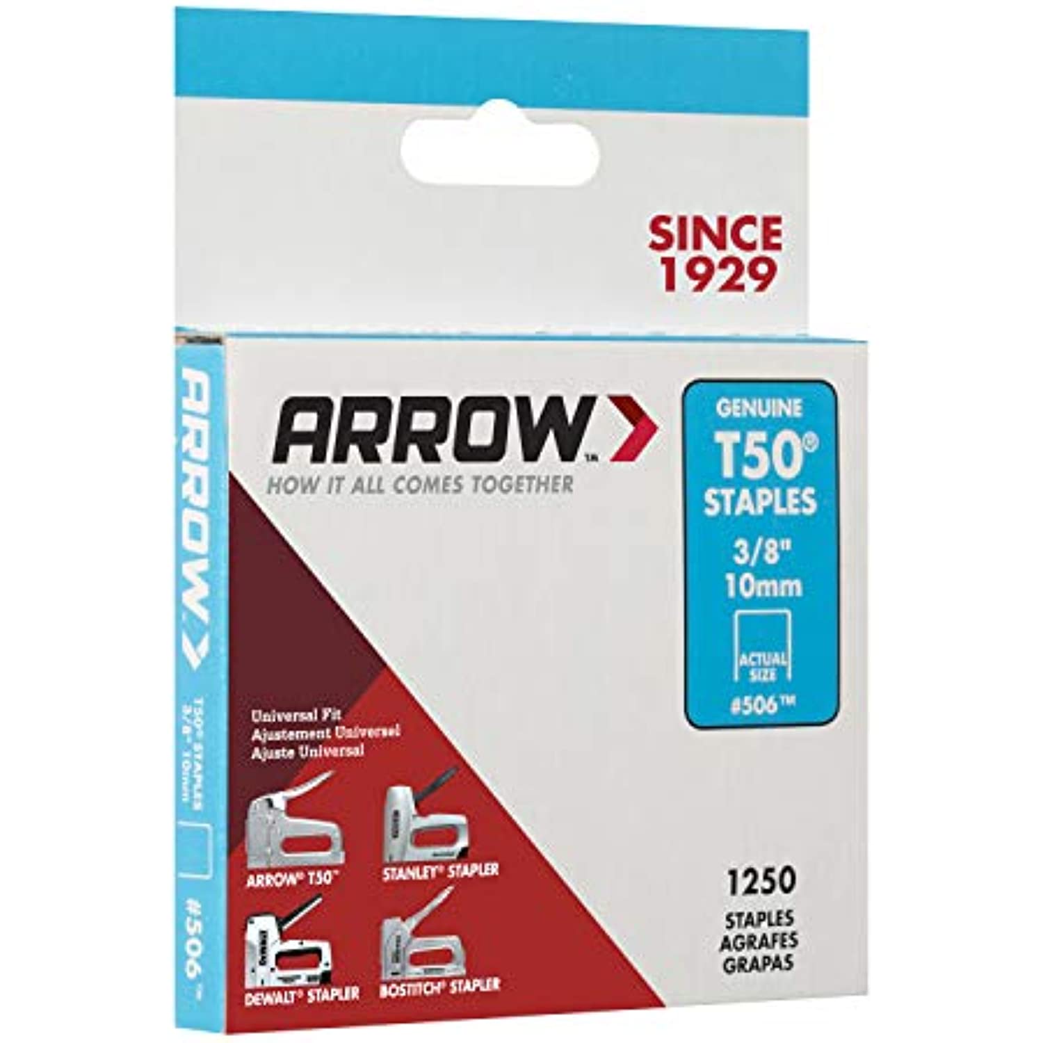 Arrow 506 Heavy Duty T50 3/8-Inch Staples for Upholstery, Construction, Furniture, Crafts, 1250-Pack