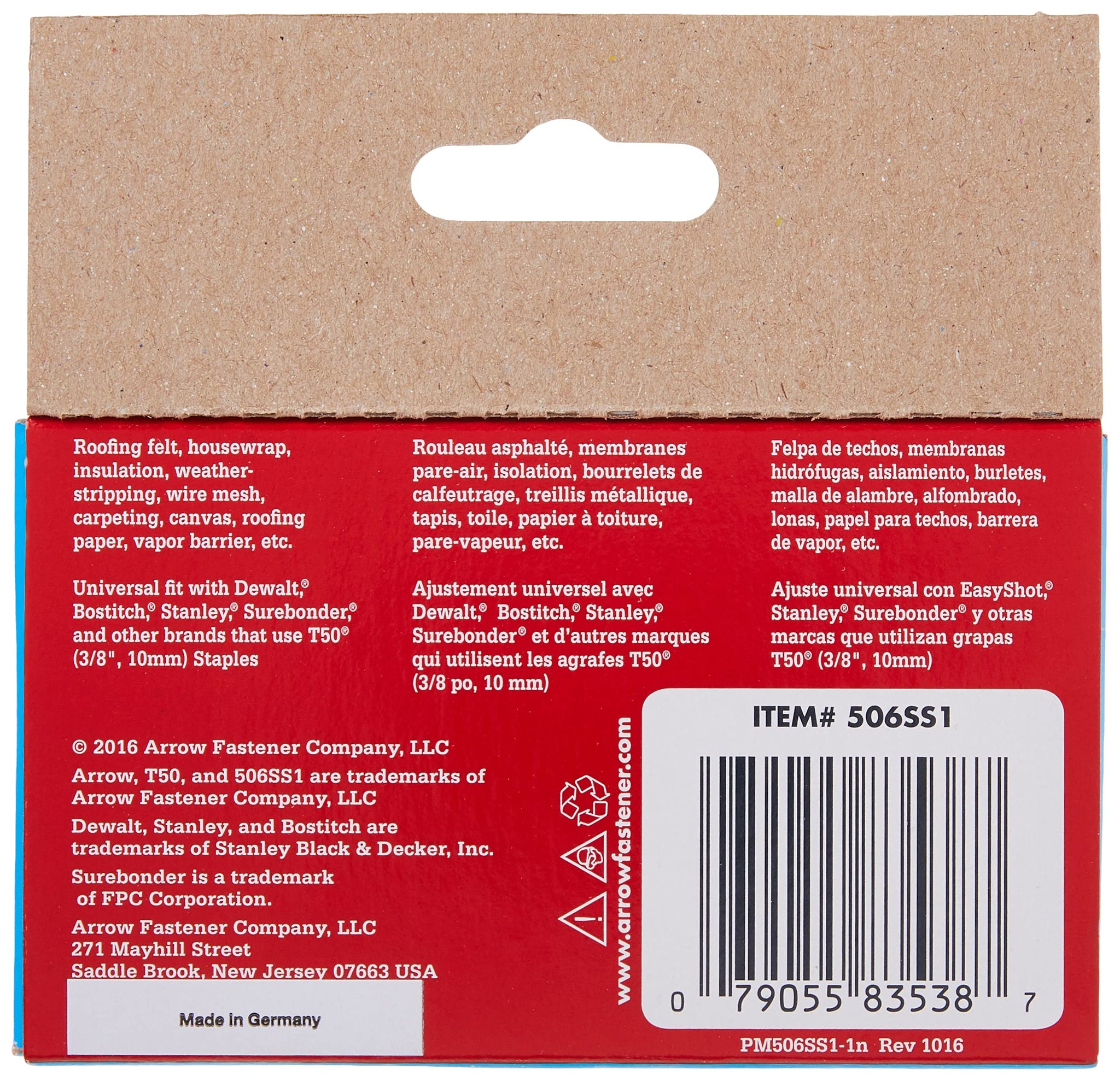 Arrow Fastener 506SS1 Genuine T50 Stainless Steel 3/8-Inch Staples, 1,000-Pack