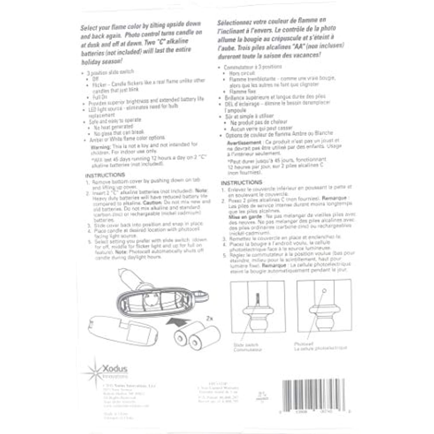 Tilt to change LED flame color from amber to warm white. The most popular LED window candle design with white candle and pewter finish deluxe base. Highlights: Battery Type: C Alkaline Bulb Type: LED Candle Material: Plastic Holder Color: Pewter Number Of Batteries: 2 Dimensions: 6 inch W x 1-3/4 inch D x 9 inch H Illuminates with a traditional amber or contemporary warm white flame, simply tilt the candle Light sensor turns the candle on at dust and off at dawn 3 position switch are off/3D/steady on LED light source never needs to be replaced