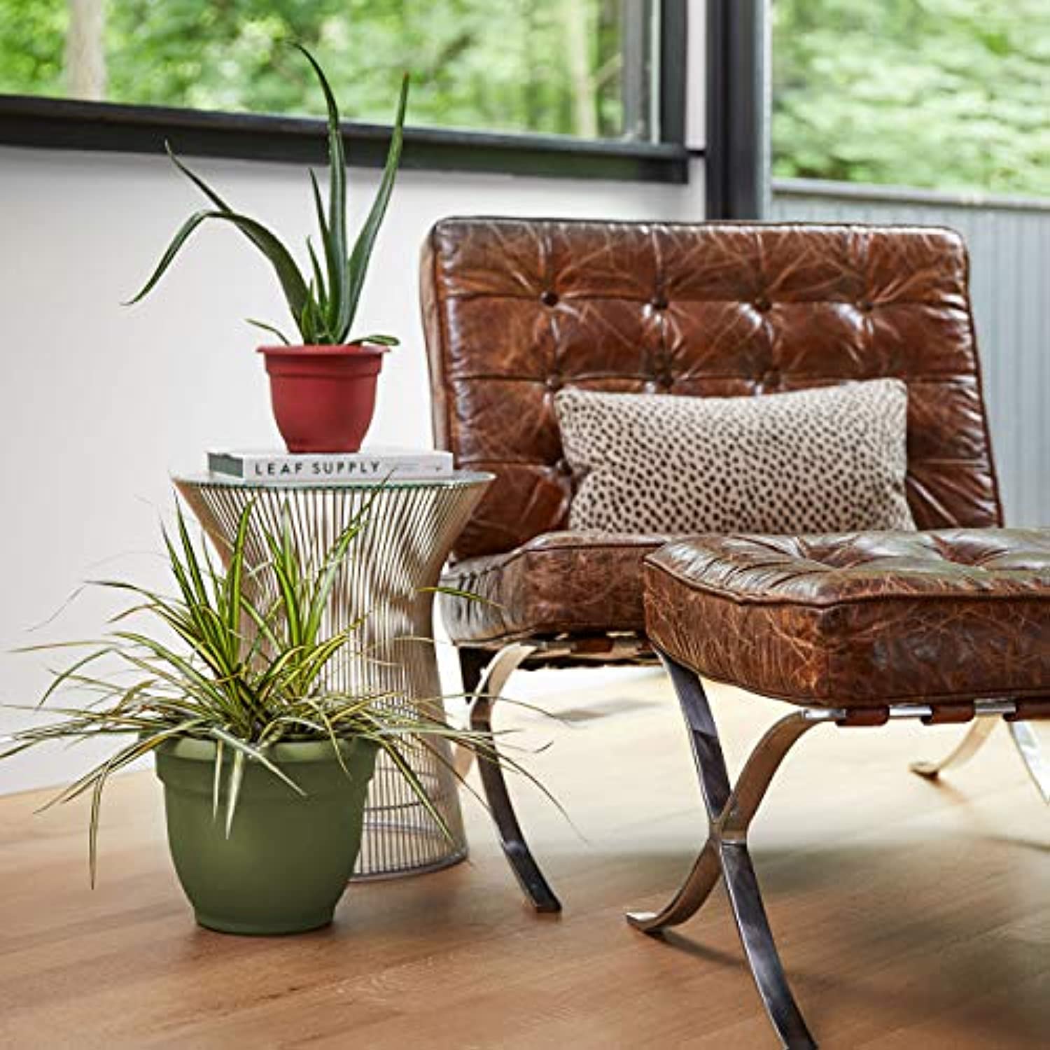 ARIANA COLLECTION by Bloem: The planter waters plants when you’re not looking and helps keep your plants from drying out. Here’s how: Inside the planter, at the bottom, is a hidden reservoir that holds approx. 1 inch to 3.5 inches of water (depending on planter size). The self-watering insert keeps dirt and roots above the hidden reservoir line while constantly providing healthy “greenhouse-like” moisture through the evaporation process. If you’re forgetful, or you’re just not home very often, self-watering containers are a must-have. They’re also helpful if you’re growing in an area that’s not convenient to a water spigot, such as a balcony. How a self-watering planter works: the potting mix is held above the water line by a sturdy screen. The water chamber is connected by small porous channels filled with soil, which then acts as a water wick. As water is used by the plant or evaporates from the surface of the soil, capillary action draws more water up from base of planter. The soil has just the right amount of water all the time, but also maintains air pockets, which the plant roots need to stay healthy. Capacity: 6 Gallons / Size: 17.75 in. Top width x 9 in. Bottom width x 13.75 in. Height Constructed of high-quality durable plastic resin. Maintenance free and easy to clean. UV-protected for fade resistance. Sealed bottom to prevent leakage indoors. Optional knock-out drainage holes when used outdoors. Self-watering disk included. The disk helps to store reserved water, which can be used up by the plants at a later time. Plant will absorb water when needed. Includes 1 - Bloem Ariana Plastic Round Self Watering Planter Safe for growing fruits, vegetables and herbs (plastic code 2 & 5).