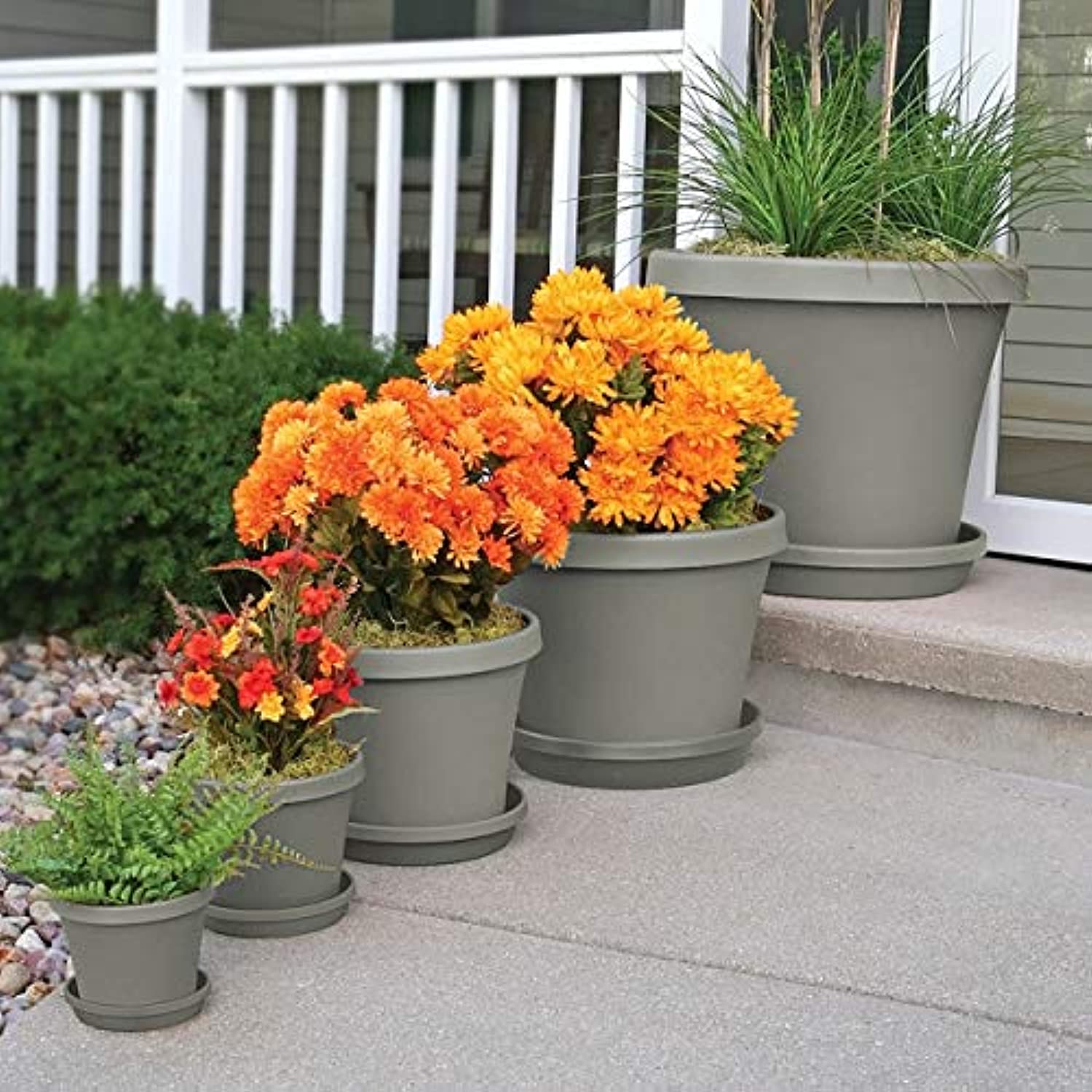 TERRA COLLECTION by Bloem: Add a touch of color to your garden or home with this charming Bloem Terra Pot Planter. Inspired by the look of clay planters but constructed of a durable polypropylene material, enabling years of functionality and reliable use. The tapered style resin planter is a tough, lightweight alternative to clay or ceramic planters. Includes drainage holes to help prevent against overwatering. Made with high-quality color pigments and UV additives, this planter offers excellent all-weather durability. Available in a wide range of sizes and colors to enhance any home's indoor or outdoor décor. Looking for accessories? Check out the complete Bloem Terra collection of window boxes, saucers, and planters. Capacity: 0.5 Gallons / Size: 6.5 in. Top width x 4.5 in. Bottom width x 5.5 in. HeightPlastic resin is UV stabilized to resist fading and last for many years.Includes drainage holes to help protect against overwatering. Matte finish is perfect for resisting scratches, dirt, and fingerprints.Includes 1 - Bloem Terra Pot Planter 6" Peppercorn