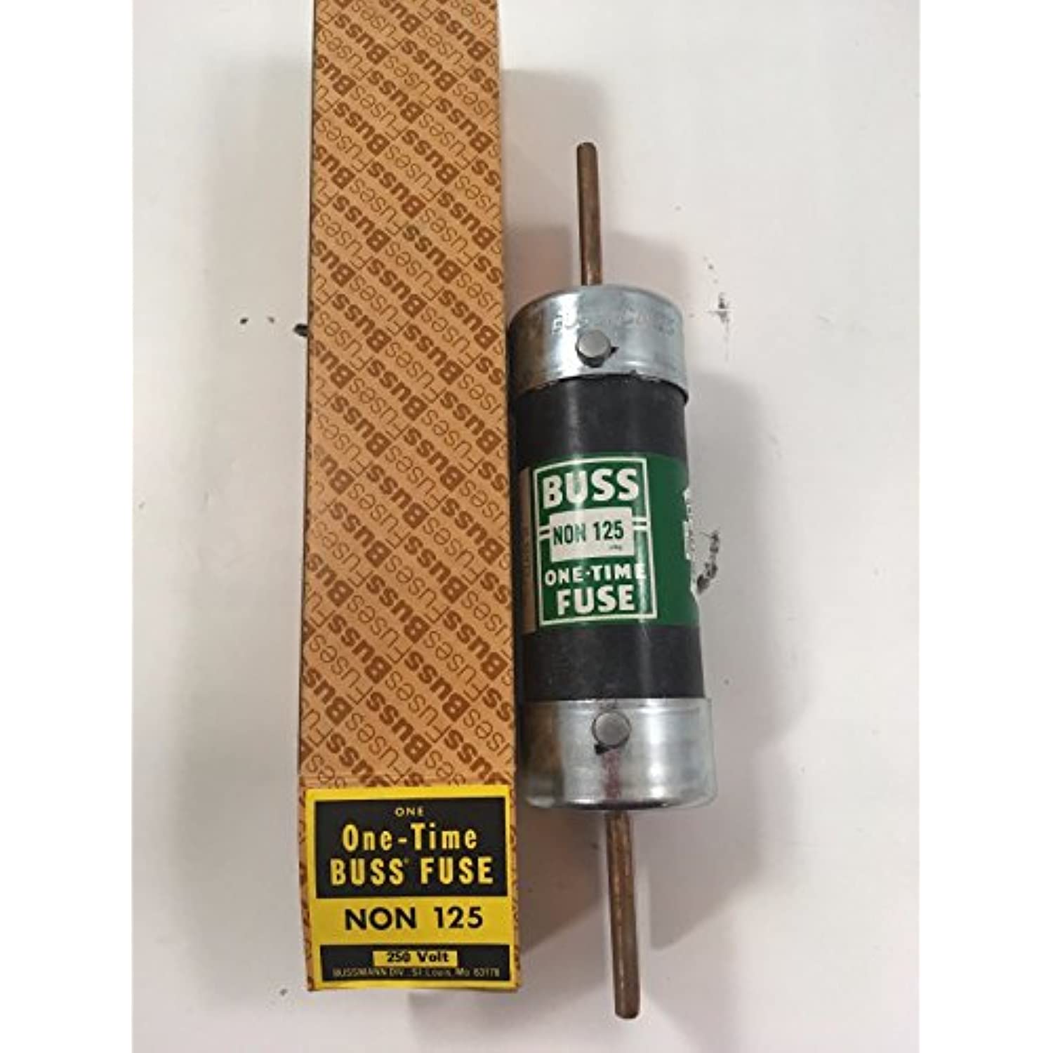 Product Description Bussmann NON125 BUSS ONE TIME FUSE From the Manufacturer One-time general purpose non-current limiting fuse used in lighting circuits, main panel protection, and other circuits that don't contain large electric motors or inductive loads. One to 60 amp fuses UL Listed Class K5 (IR: 50kA). 70 to 600 amp fuses UL Class H (IR: 10kA). Cartridge fuses are used to protect motors and branch circuits where higher amps or volt ratings are required. They are available in a wide variety of sizes, amp and volt ratings up to 600Vac and 600 amps. Cartridge fuses are used extensively in commercial, industrial and agricultural applications as well as residential fuse panels, air conditioning, pumps, appliances and other equipment. Cartridge fuses are available in two types. General Purpose fuses have no time-delay and protect fuse panels, appliances and branch circuits. Heavy- Duty fuses have a time-delay feature, allowing momentary motor startups. Both are available in 250Vac and 600Vac versions with catalog symbol and amp rating stamped on the knife blade or end cap.