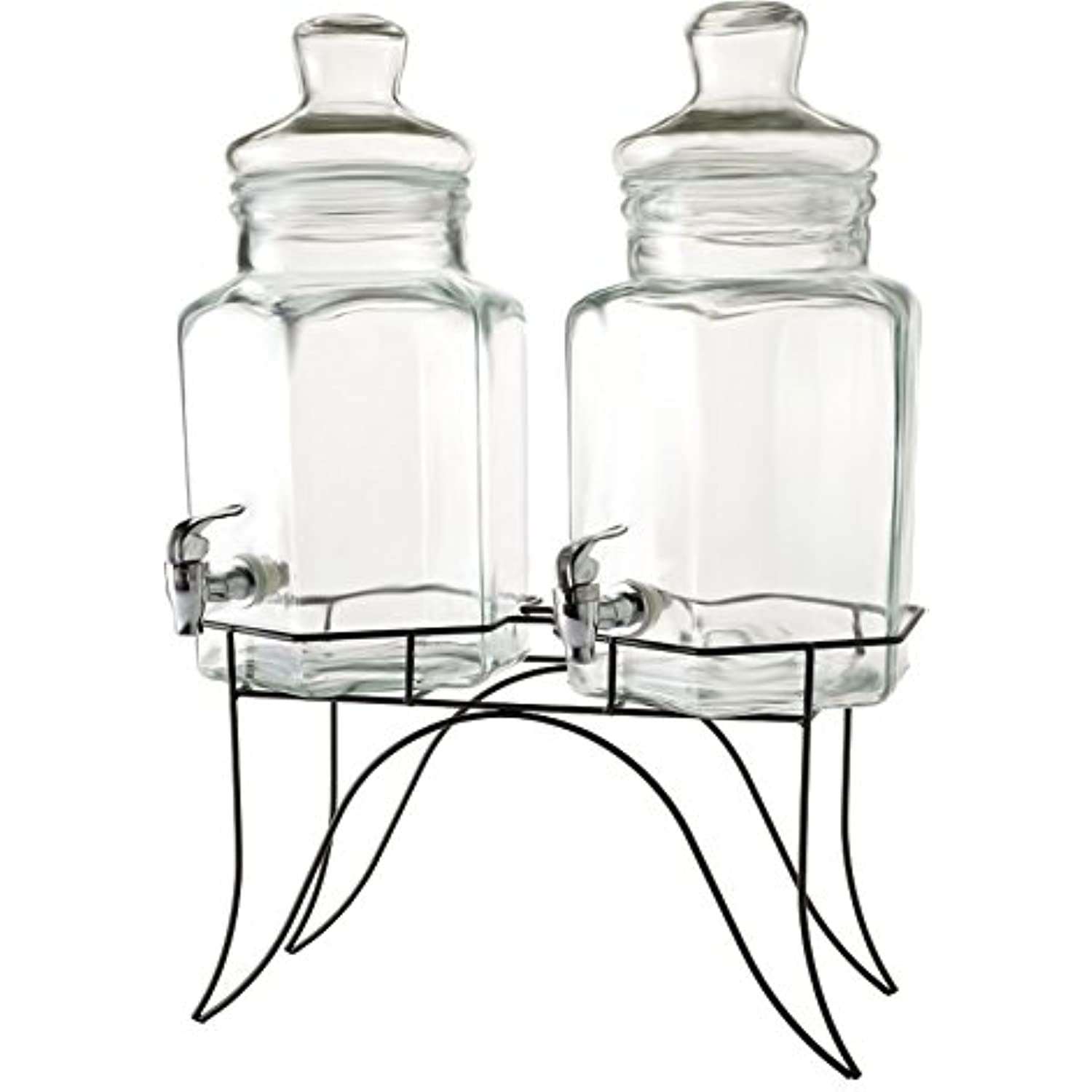 Circleware Double Beverage Dispensers with Stand and Spigot, Fun Party New Entertainment Home Kitchen Glassware Cold Drink Pitcher for Water, Punch & Iced Tea, 1.3/2.6 Gallon, Dopier
