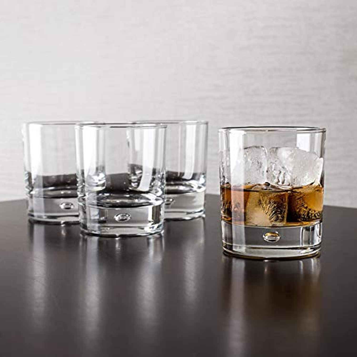 - VIEW YOUR BEAUTIFUL COCKTAILS WITH ELEGANT CLARITY: These modern lowball glass cups feature exquisite clarity, with a bubble in-base design. Perfect for formal entertainment while also being the glassware of choice for casual dining at parties, weddings and other ceremonies. This glass set is perfect for any drinks – Water, juice, wine, beer, martinis, fruit drinks, you name it. Ideal for juice & all beverages as well.