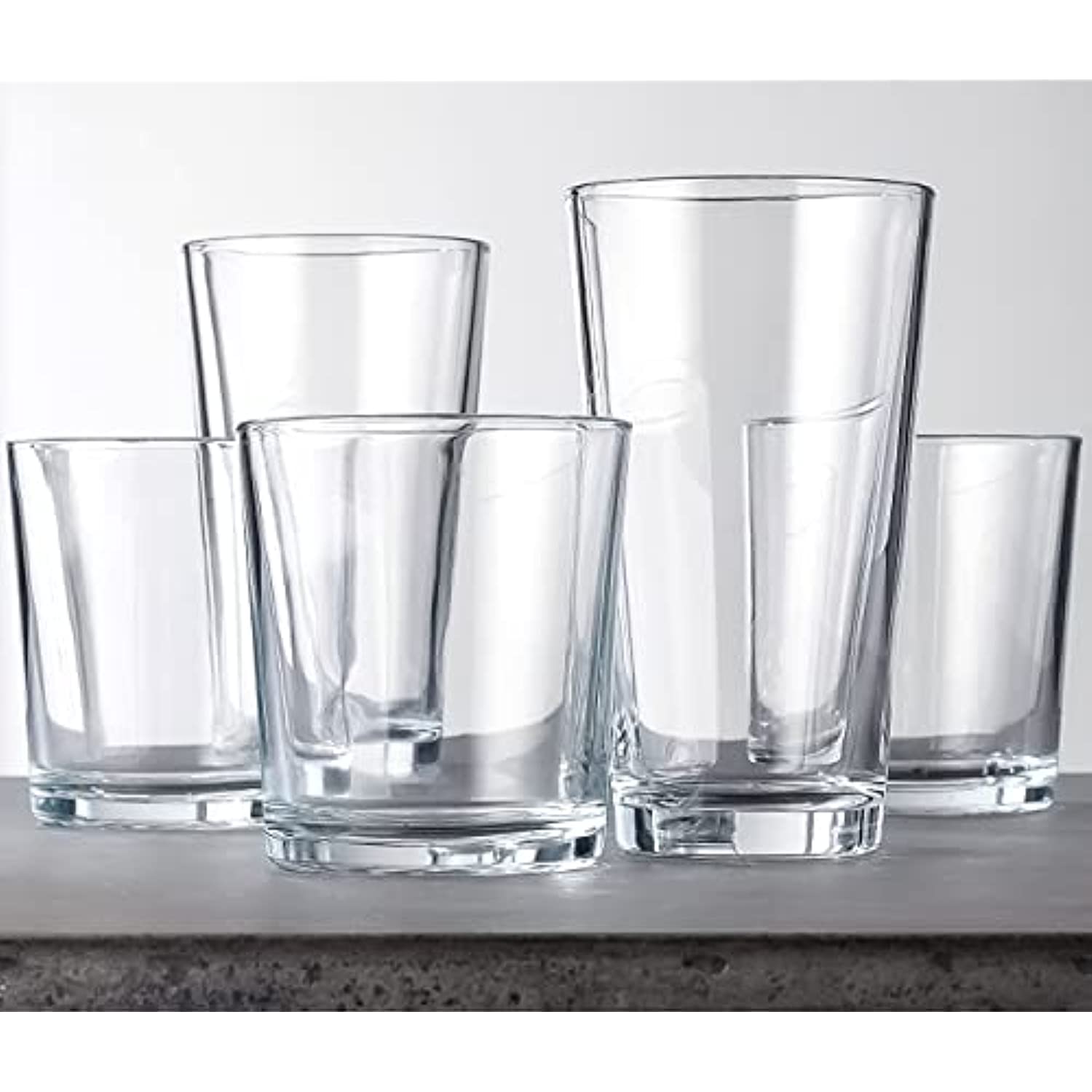 Durable 16-piece set includes 8- 17oz highball and 8- 13oz DOF drinkware set is perfect for casual or formal use Layers beautifully with a variety of dinnerware and table settings.