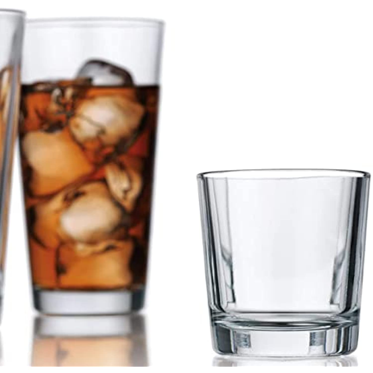Clear Drinking Glasses Set of 16, Durable Heave Base Glass Cups, 8 Highball Cocktail Glasses, and 8 Rock DOF Whiskey Glasses - Beer Glasses Ideal for Water, Juice, Wine, and Everyday Cocktails