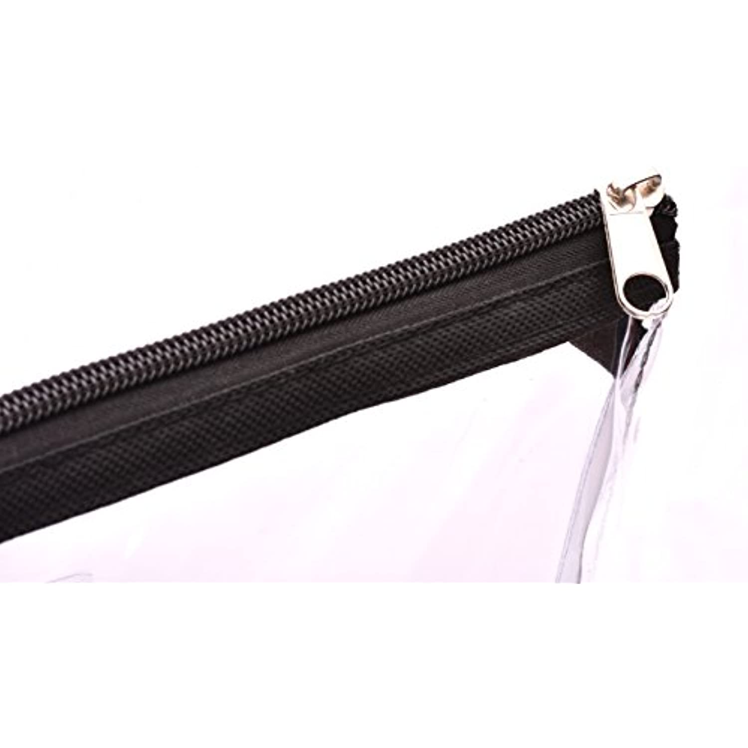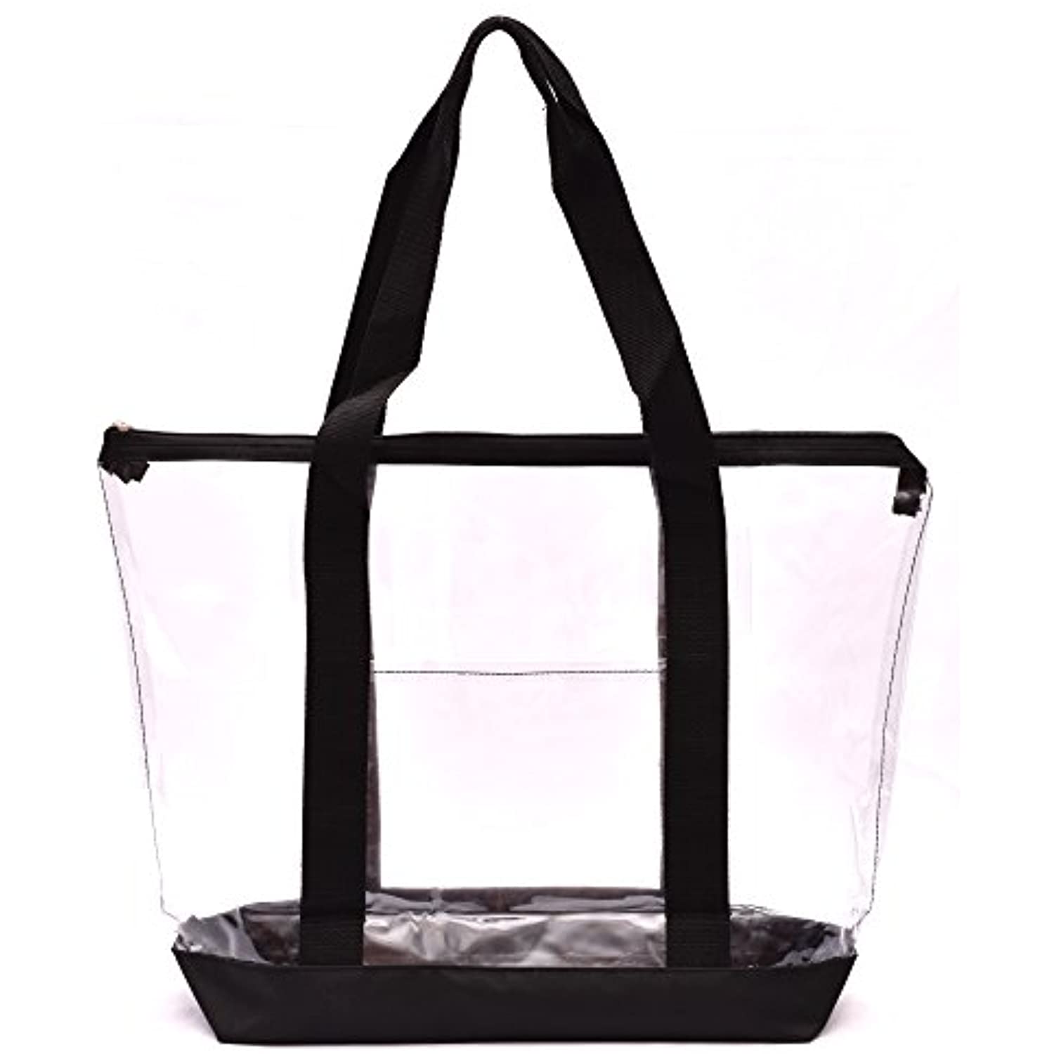 Clear Tote Bag - Zipper Closure, Long Shoulder Strap, Fabric Trimming. (Black)