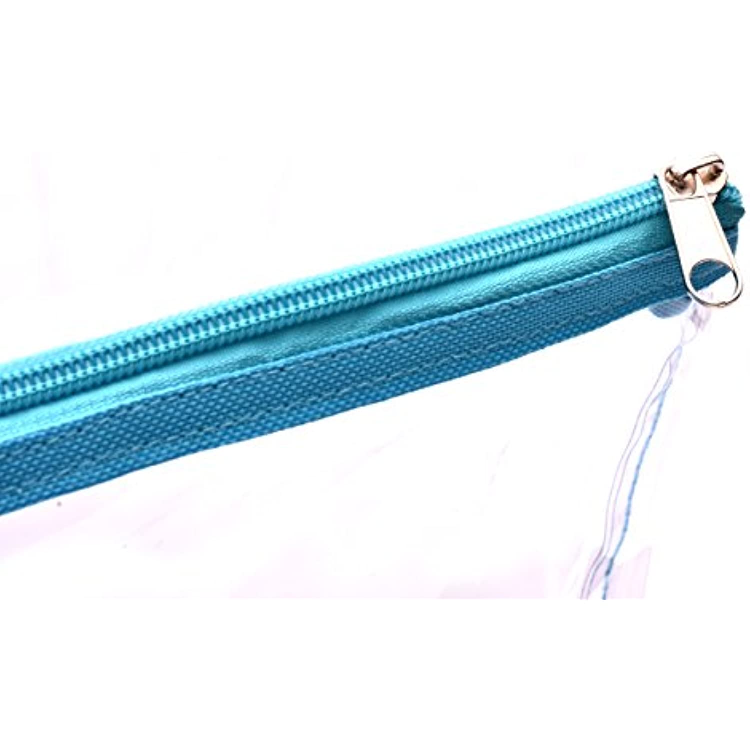 Clear Tote Bag - Zipper Closure, Long Shoulder Strap, Fabric Trimming. (Teal)