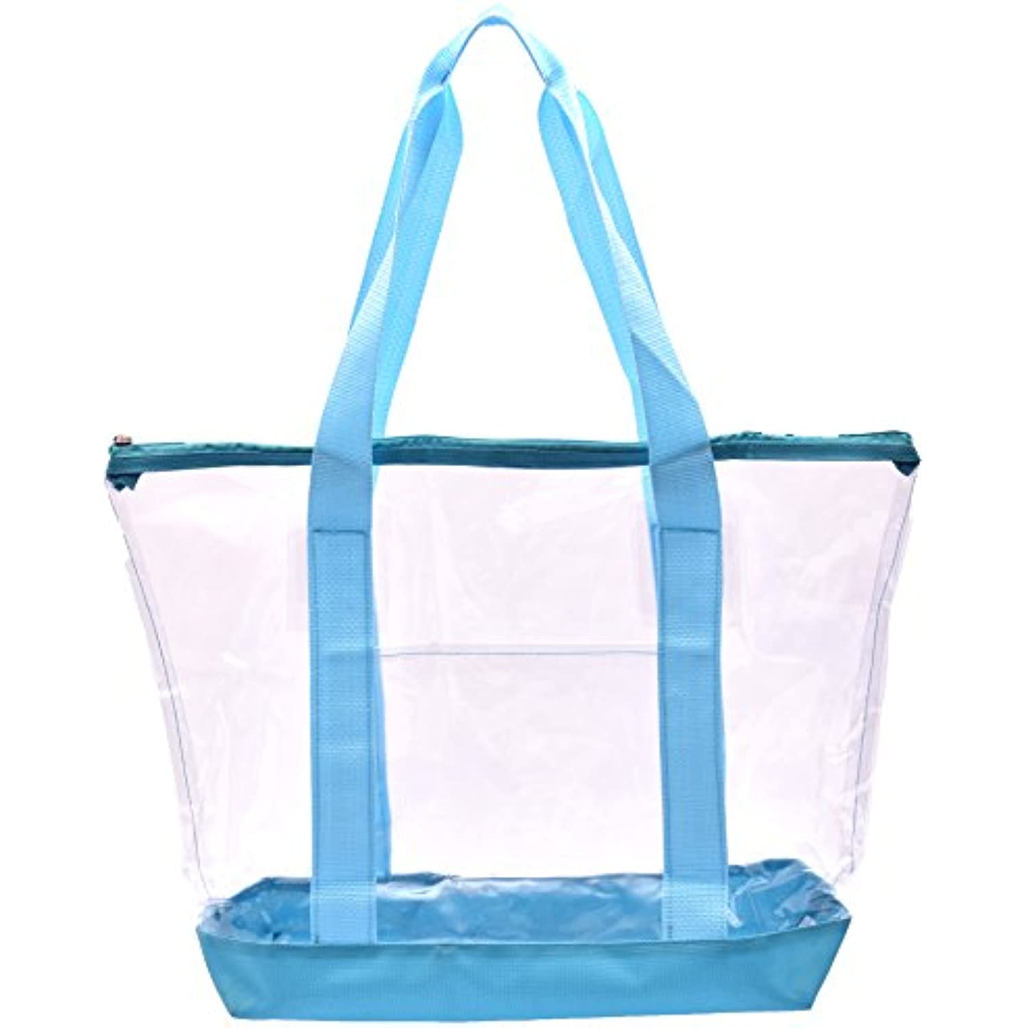 Crystal clear, strong and dependable, this tote bag will be the one you reach for time and again. It’s ideal to use as a gym bag or to pack things up for the beach. Take it along for work or travel; it’s always handy to have around. Constructed from heavy duty PVC material, it is both waterproof and durable. This tote bag is large enough to hold all your essentials, and because it’s transparent, it’s suitable for all the venues that require clear bags. It features an attractive fabric trimming, available in various colors, and comfortable long shoulder straps. Additionally, a top zipper closure keeps your items secure. And, a convenient large front pocket allows you quick access to find items easily. Avoid the extra time and hassles; take this clear tote bag along with you to the next sports game or concert and pass through security with ease. It has plenty of space to pack your water bottles, camera, phone, lunch, snacks and other items. It’s great for carrying gym clothes, beach towels and travel items as well. Measuring 19 inches X 14 inches X 6 inches, it’s designed conveniently for a variety of everyday uses.