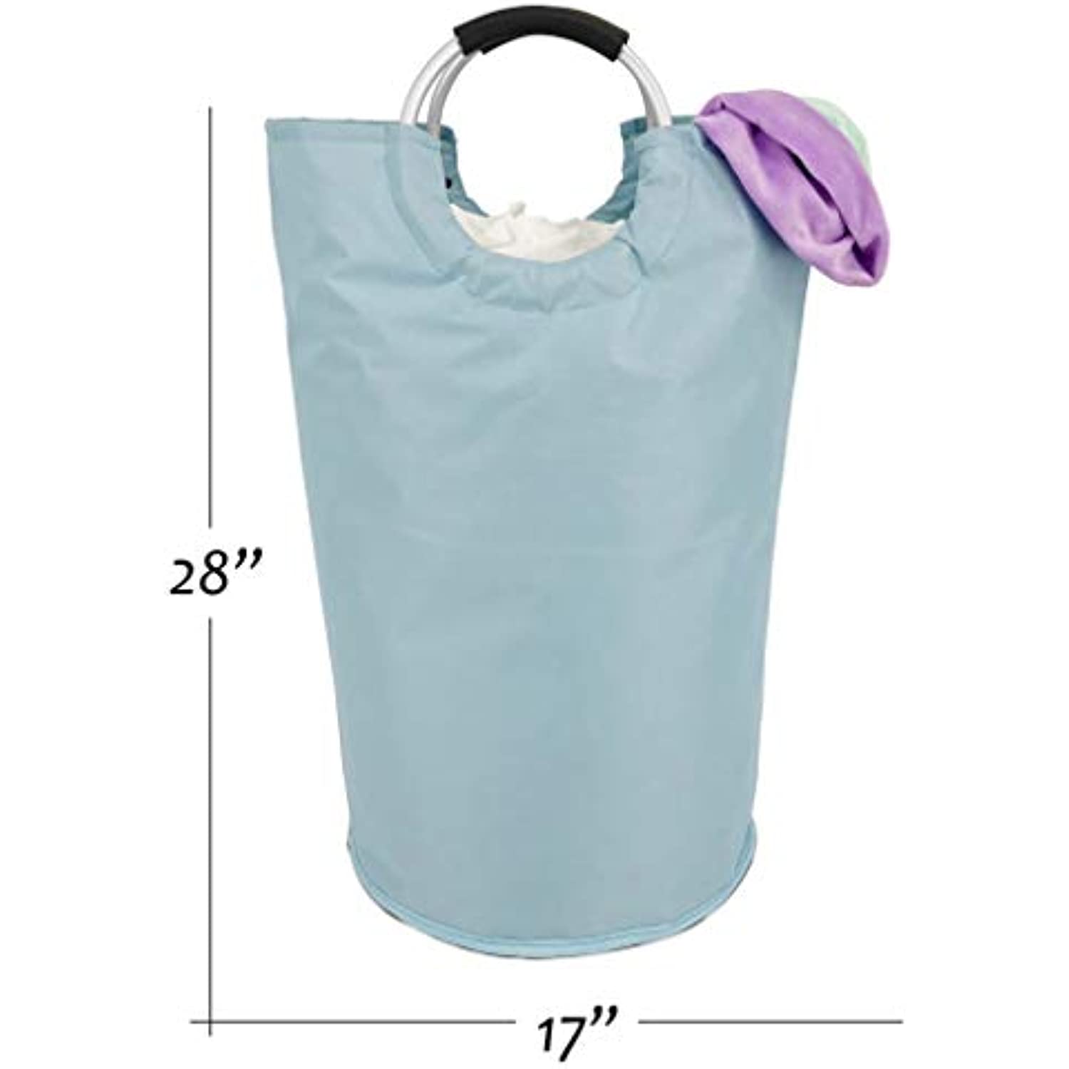 Collapsible Fabric Laundry Hamper - Portable, Foldable Large Capacity Laundry Basket, Durable Comfortable Padded Carry Handles, Self Standing Washing Bin, Folds Easily in Laundry Room Storage. (Blue)