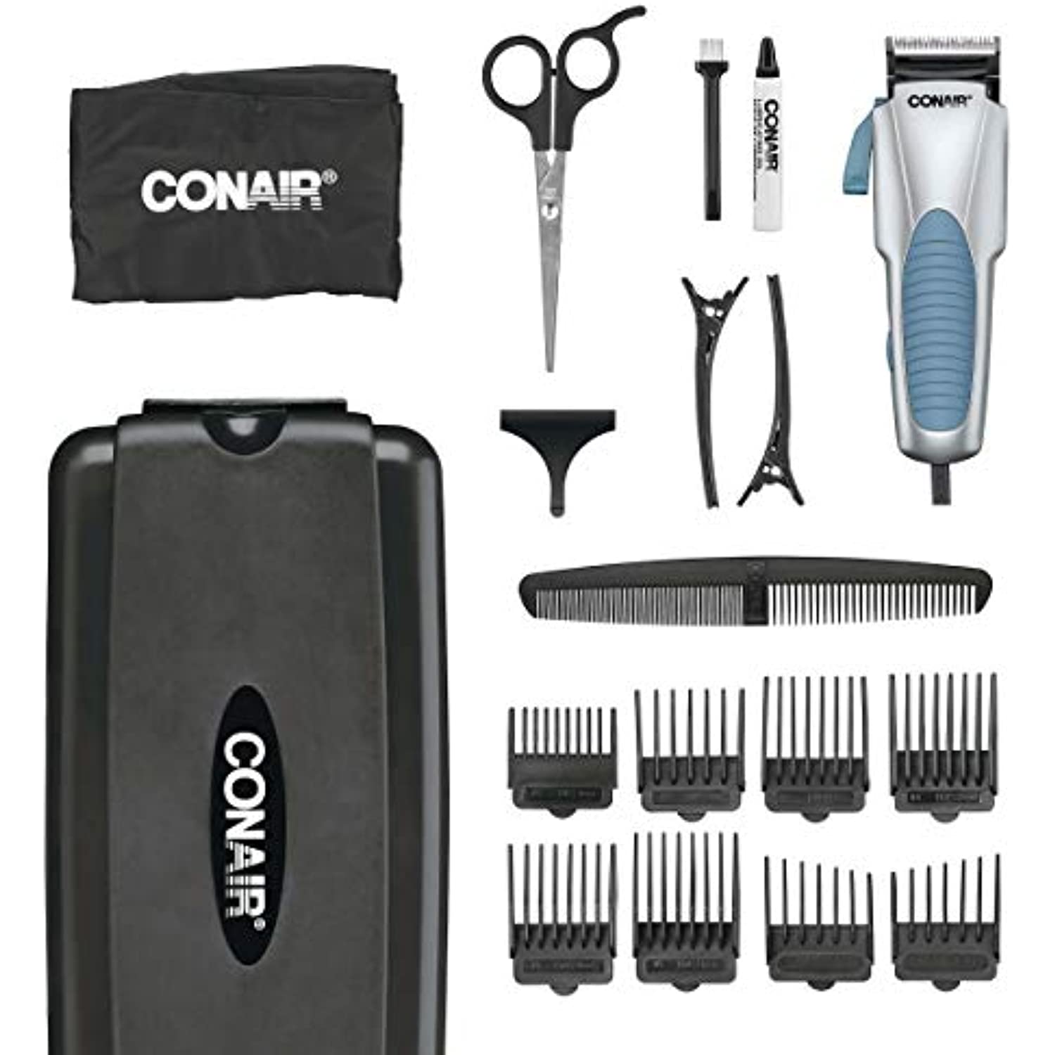Conair Custom Cut 18-Piece Haircut Kit, Stainless Steel/Blue
