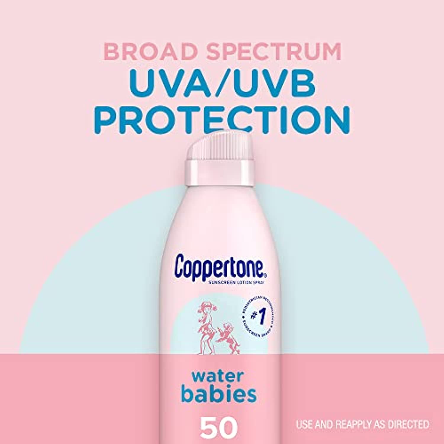 Coppertone Water Babies Sunscreen Lotion Spray SPF 50, Pediatrician Recommended Baby Sunscreen Spray, Water Resistant Sunscreen for Babies, 6 Oz Spray, Pack of 2