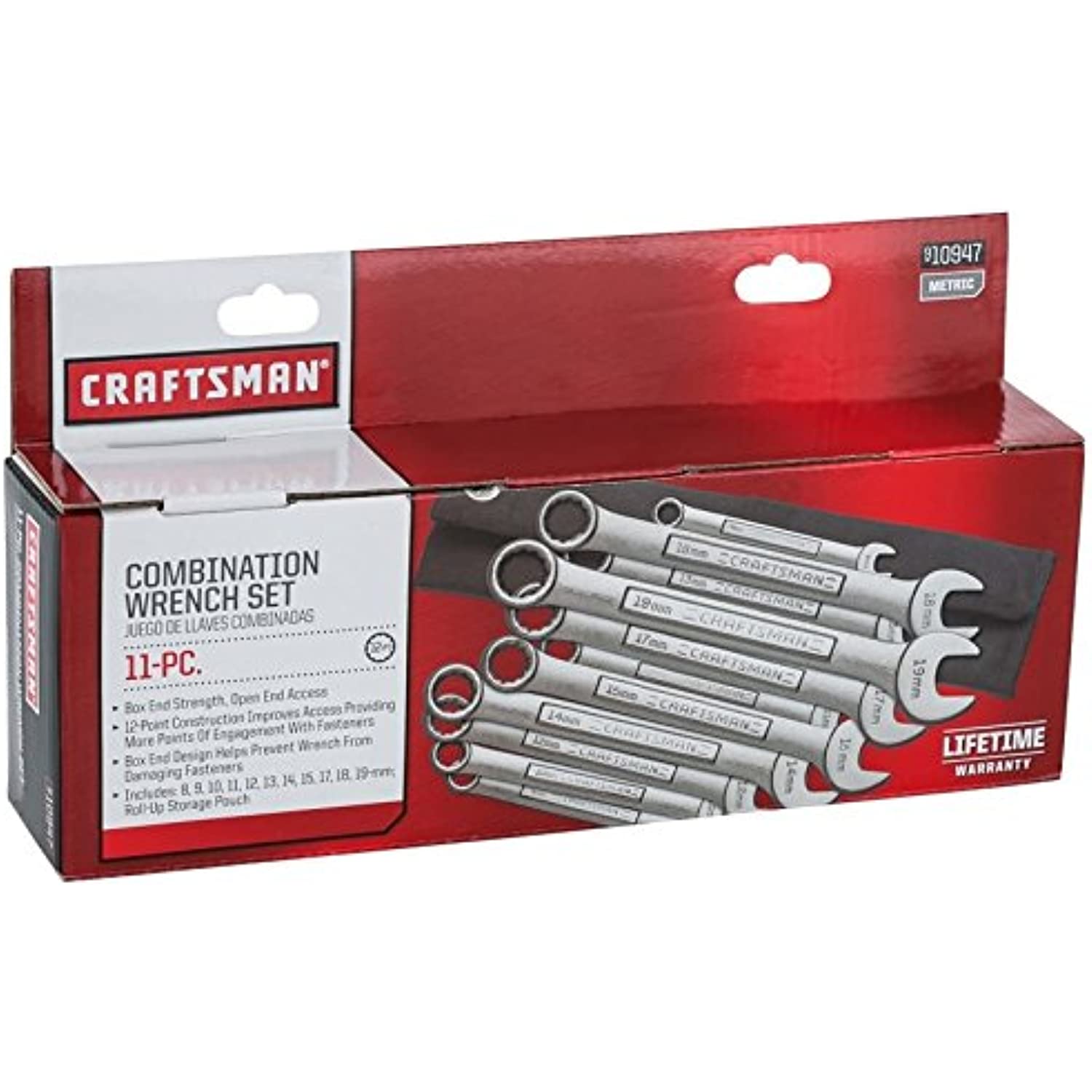 CRAFTSMAN 910947 11 Piece Metric Combination Wrench Set Whether you want to get some plumbing or auto work done, the Craftsman 11-piece Metric Combination Wrench Set is a must-have for the home, garage or workshop. Made from forged steel, always keep this reliable wrench set handy in your car, auto shop or garage for everyday jobs and emergencies. The Craftsman 11-piece Metric Combination Wrench Set has two usable ends on each wrench so you get more work done with one tool. Use the box end to loosen nuts and then the open end for faster turning. The metric sizes are compatible for a wide range of loosening and tightening needs. The 12 point box end of the wrenches mean easier turns in enclosed, narrow spaces.FEATURES