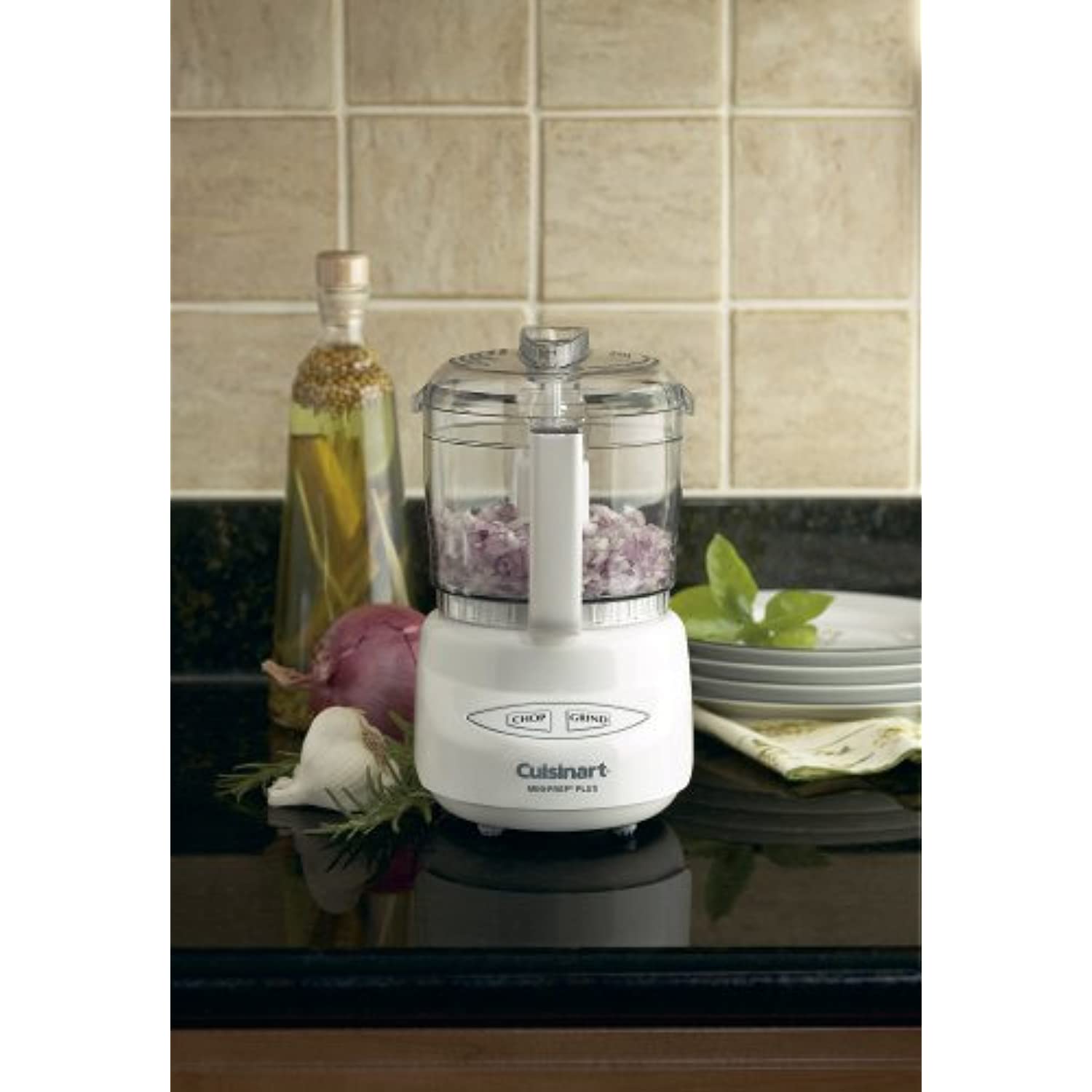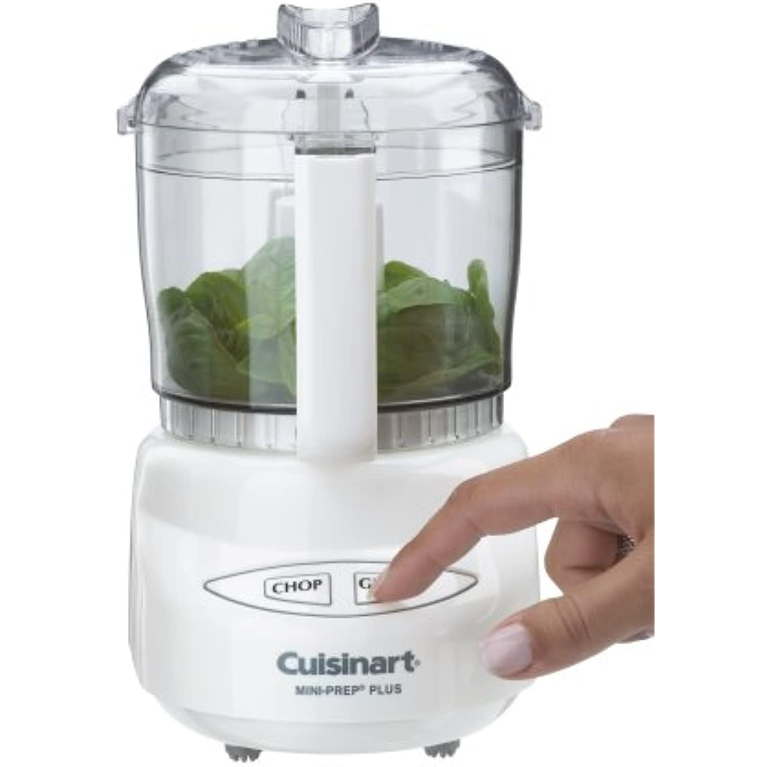 Amazon.com This little 250-watt workhorse comes in handy when a full-size food processor is unnecessary. The 3-cup work bowl is just right for making pesto or a salad dressing, and two receptacles in the lid have pinholes for one or two oils to stream into the bowl while the processor is blending a perfect emulsion. It's also ideal for chopping and grinding. Pressing the "chop" button deploys the sharp edge of Cuisinart's patented reversible blade to chop onions, herbs, or bread crumbs. Pressing the "grind" button whirls the blade in the other direction so its blunt side can grind nuts, coffee beans, or cheese. Compact at just 9 inches high and lightweight (it has a plastic body), the Mini Prep Plus can be tucked away in a cabinet, and the little spatula accompanying it goes into a drawer. It carries an 18-month warranty against defects. The plastic work bowl and lid are dishwasher-safe, but the stainless-steel blade should be hand washed to protect its edges. --Fred Brack Product Description The Mini-Prep® Plus 24 Ounce Processor is the perfect little helper for small food preparation, from chopping herbs to finely grinding hard cheese. Its versatility lies in the special Auto Reversing Smart Blade™ making the Mini-Prep® versatile, and it is easier to process both soft and hard foods in the 24 ounce work bowl. Designed in Italy, the Mini-Prep® Plus is easy to clean as it is to look at, with a wipe-clean touch pad and dishwasher-safe removable parts. Brand Story By Cuisinart