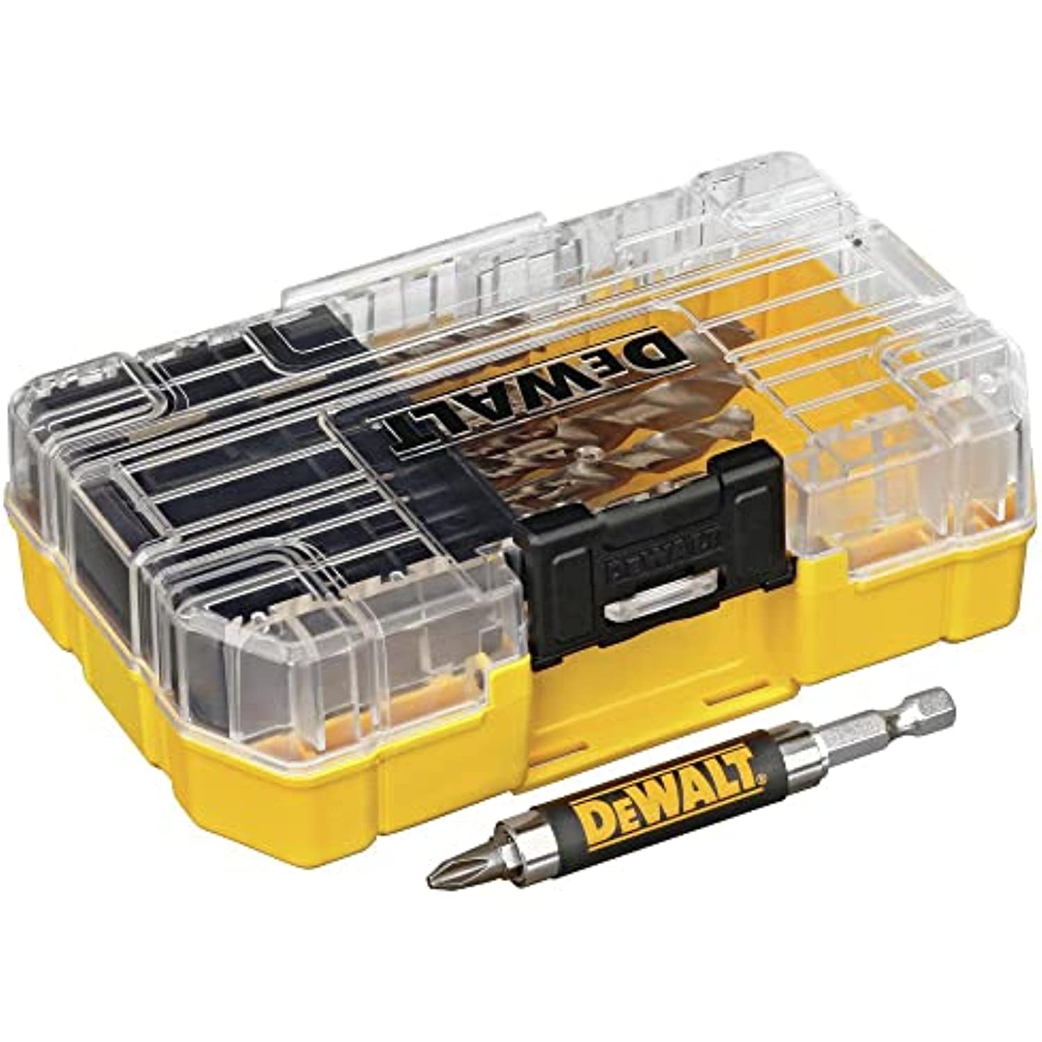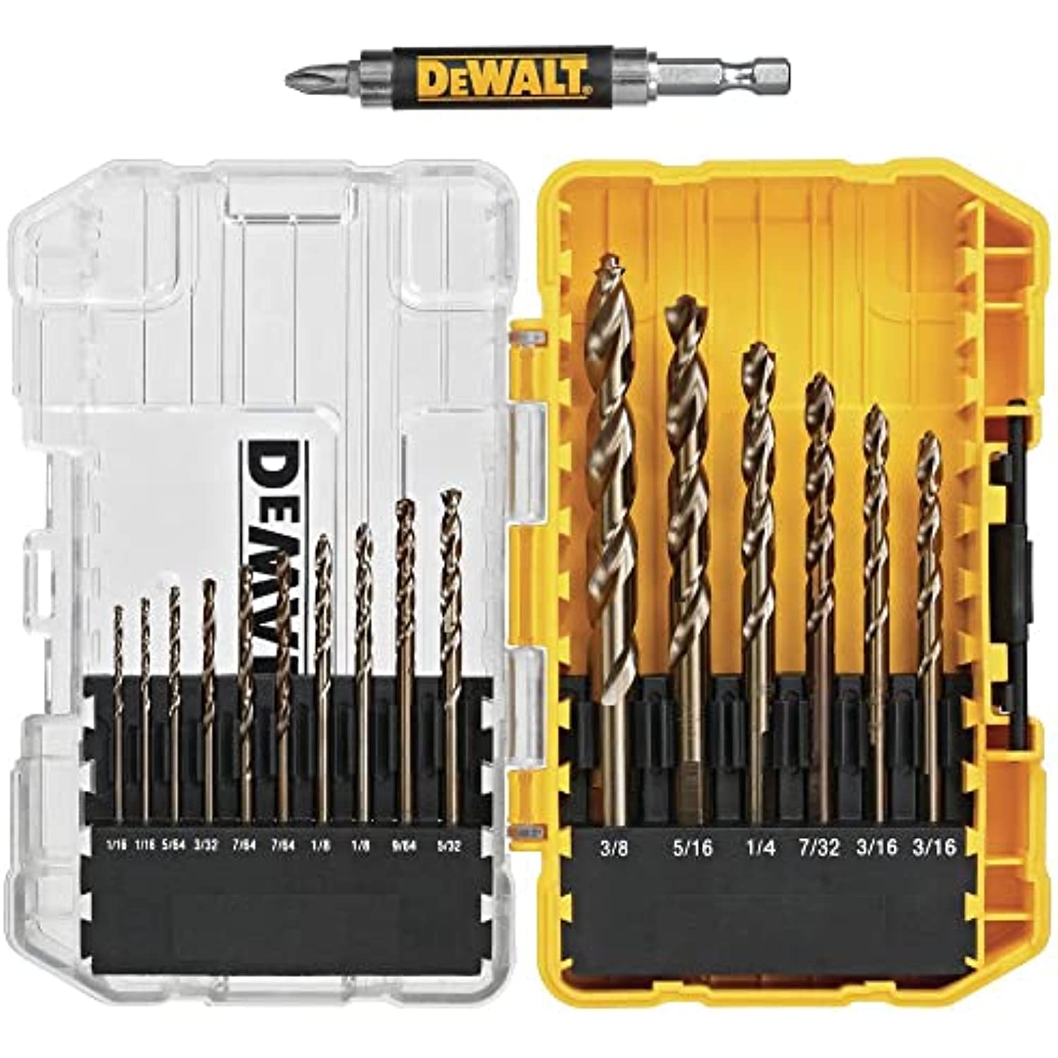 Includes 16-piece Pilot Point drill bit set - DW1170, 1/16-in pilot point bit, (2) 5/64-in pilot point bit, 3/32-in pilot point bit, 7/64-in pilot point bit, (2) 1/8-in pilot point bit, (2) 9/64-in pilot point bit, 5/32-in pilot point bit, 3/8-in pilot point bit, 5/16-in Pilot point bit, 1/4-in Pilot point bit, 7/32-in pilot point bit, 3/16-in pilot point bit, (2) drill bits, magnetic bit driver guide with #2 phillips bit.