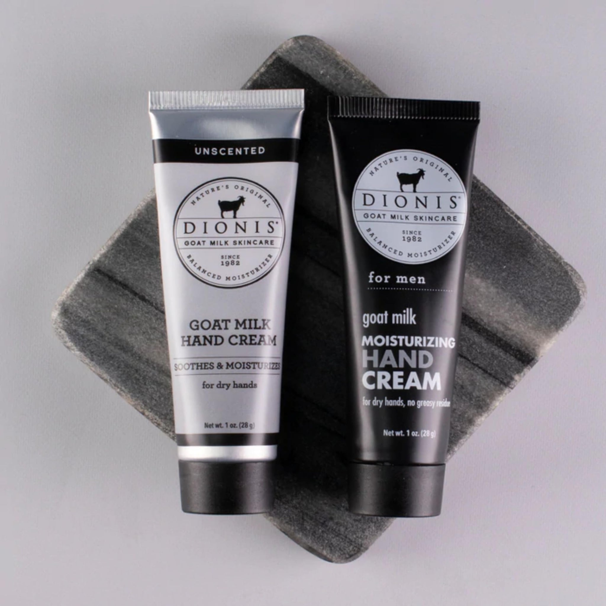 - A Scent Just For Men - Treat the men in your family with Dionis' moisturizing unscented Hand Cream Gift Set. A great gift option for men always on the go, include our travel size tubes in any gift bag, box or gift basket, this Father's Day to share your love of hydrated skin with Dad.