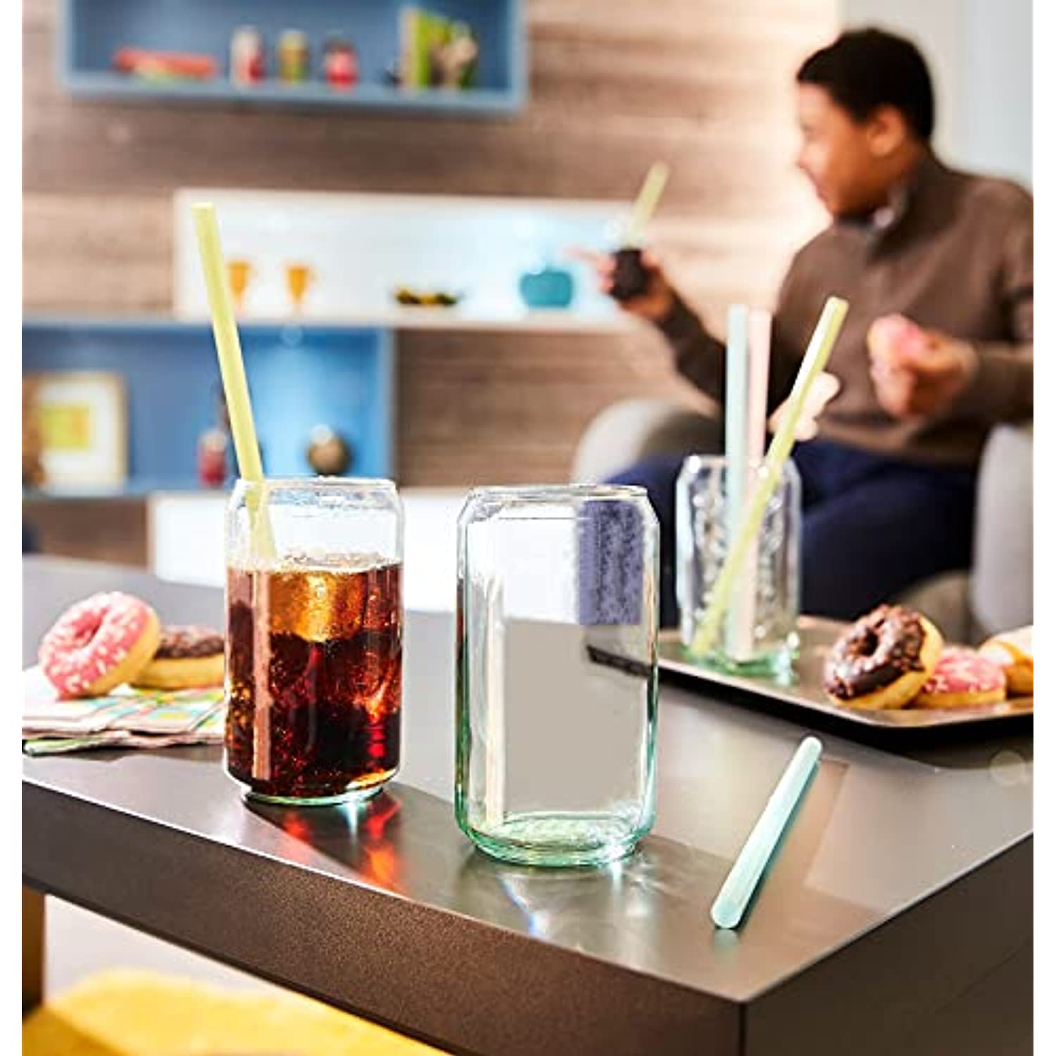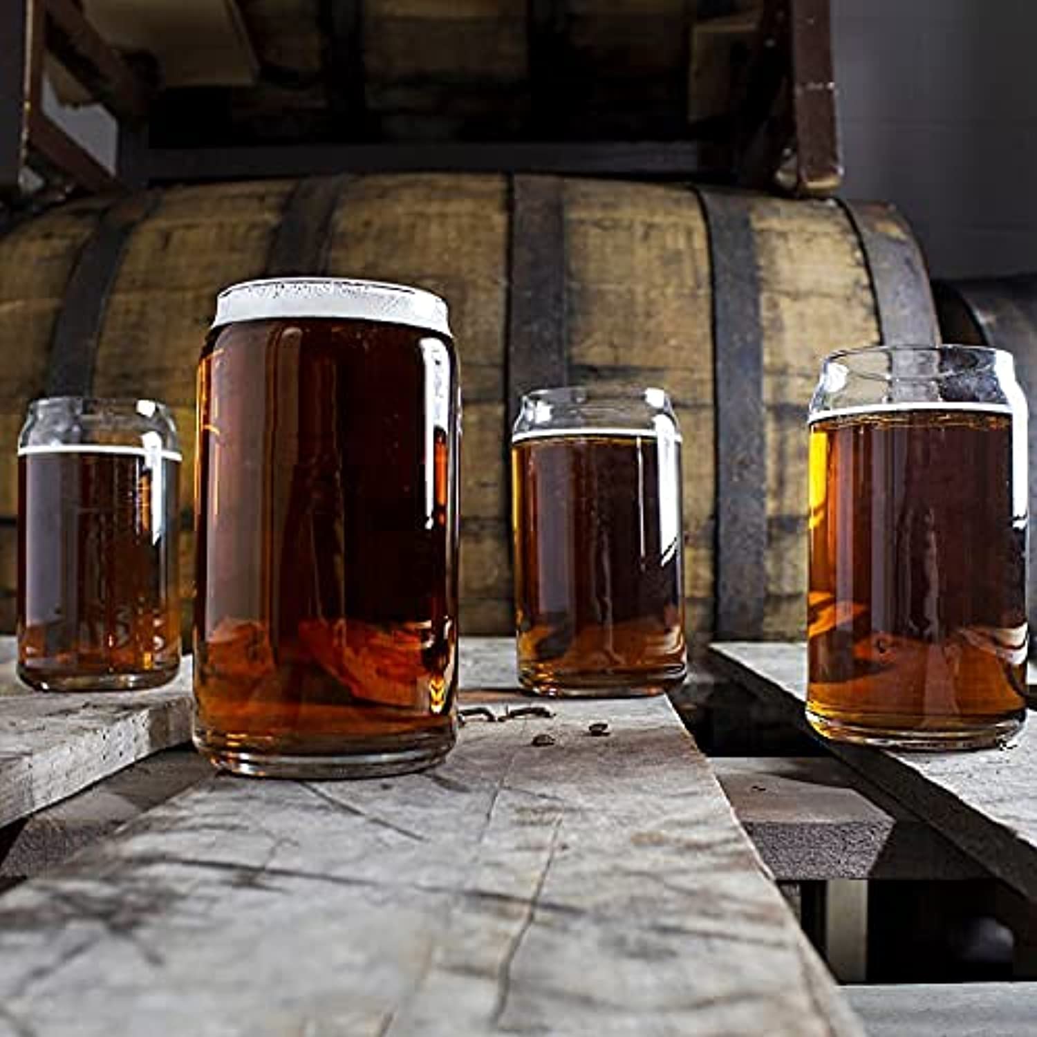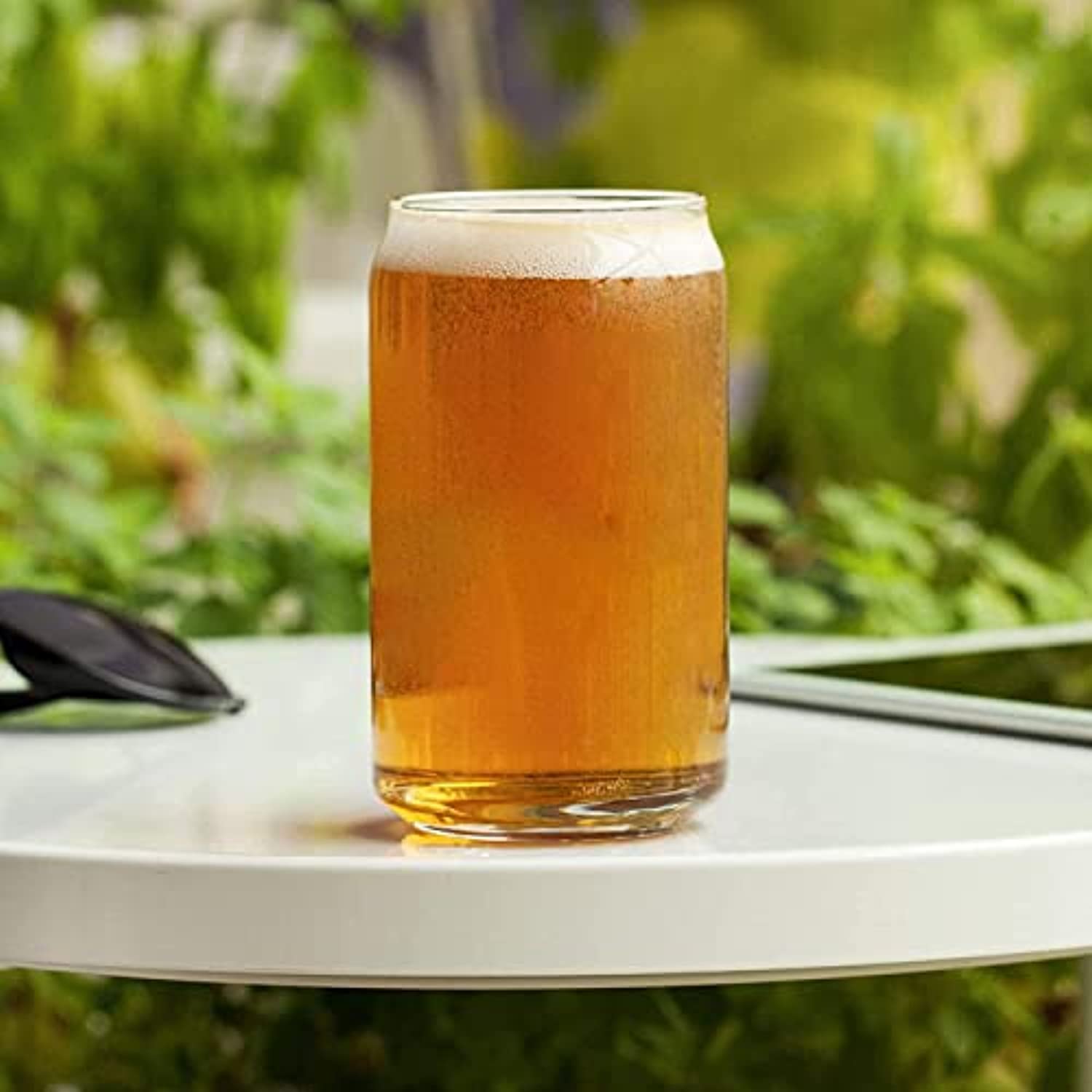 Drinking Glasses 6pc Set - Can Shaped Glass Cups, 16oz Beer Glasses, Tumbler Cup, Cocktail Glasses, Whiskey Glasses, Iced Coffee Glasses, Iced Tea Glasses, Wine Cups, Water Glasses, Kiddush cups.