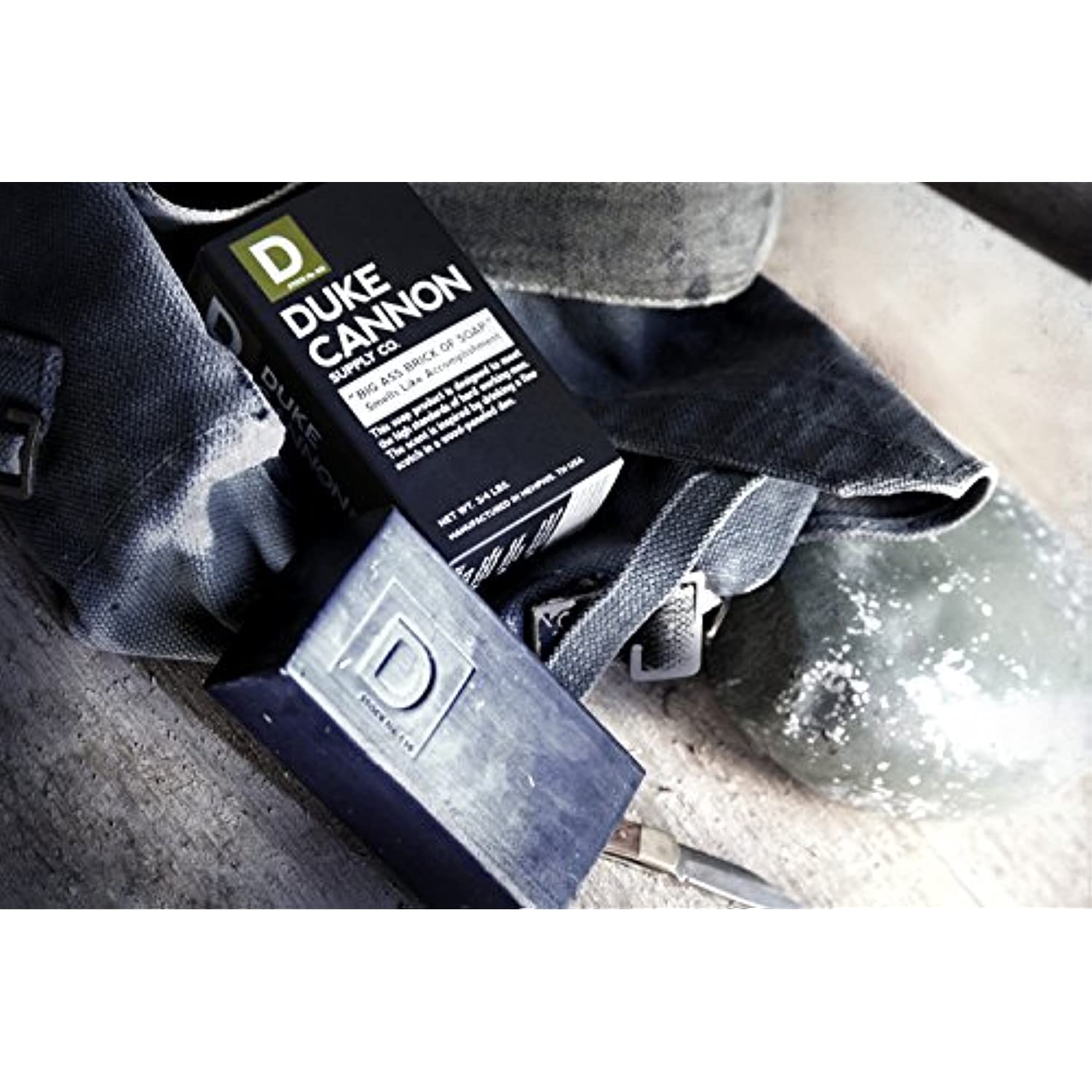 Duke Cannon "Big Ass Brick of Soap" Smells Like Accomplishment: This soap product from Duke Cannon Supply Co. is designed to meet the high standards of hard working men. The incredibly masculine scent of Bergamot and Black Pepper evoke a feeling of drinking a fine scotch in a wood-paneled den. Simply put, it is the scent of Accomplishment. Like all Duke Cannon soap products, each brick is large (10 oz.) and contains steel cut grains for maximum grip and exfoliation. This soap product is designed to meet the high standards of hard working men who want to get clean & smell good without using feminine shower gels and accessories. This product is modeled after the rough cut, "brick" style of soap used by GIs during the Korean War and is manufactured in the same plant that was the primary supplier of military soap for over 20 years. // In appreciation of the men and women who have kicked butt serving our country, Duke Cannon Supply Company donates a portion of proceeds to veterans causes. MADE IN USA