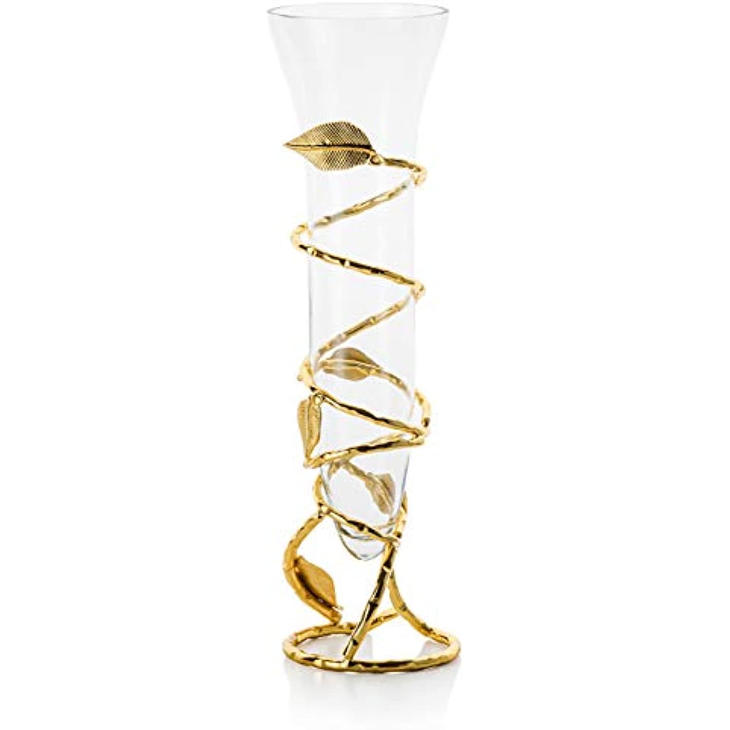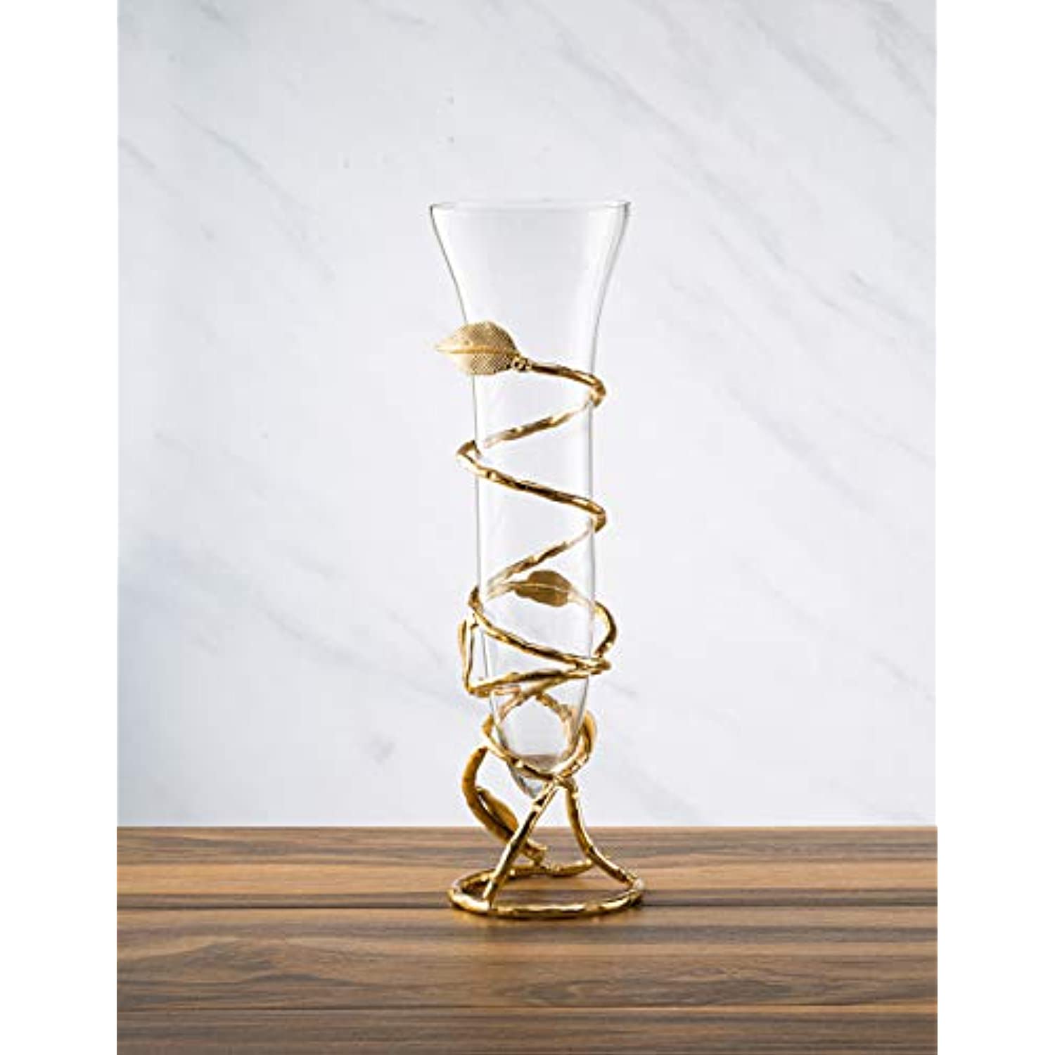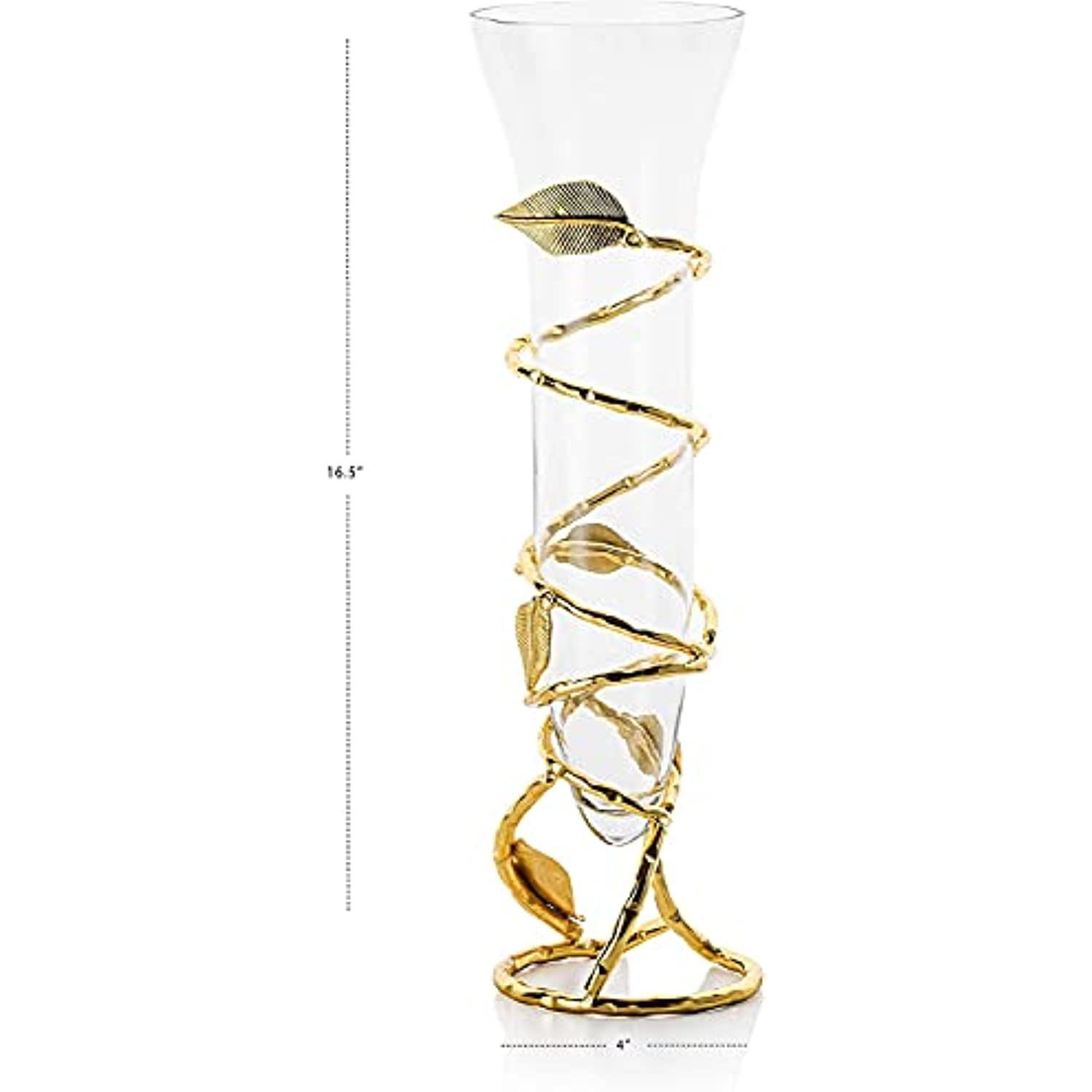 Elegant Glass Vase with Gold Leaf Design for Flowers, Home Décor or Wedding Centerpiece | Decorative Crystal Flower Vase