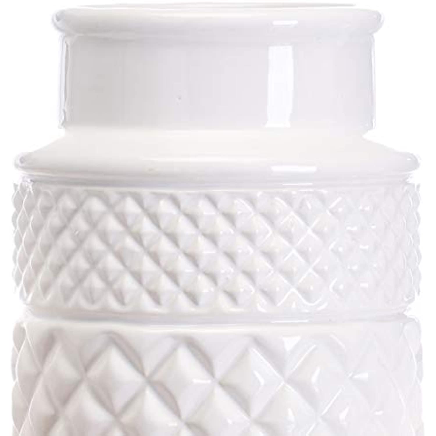Faceted Classic White 11 x 5 Glossy Ceramic Storage Canisters Set of 3