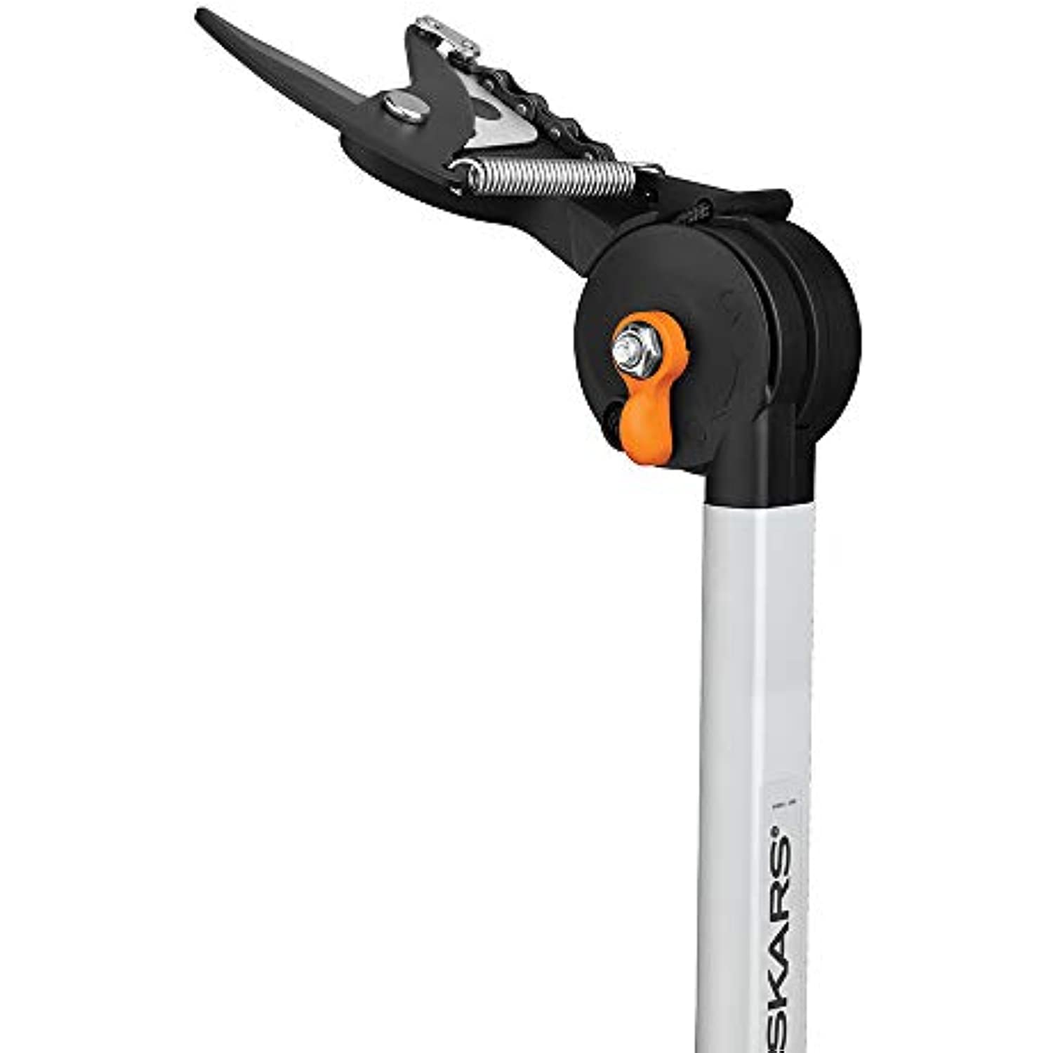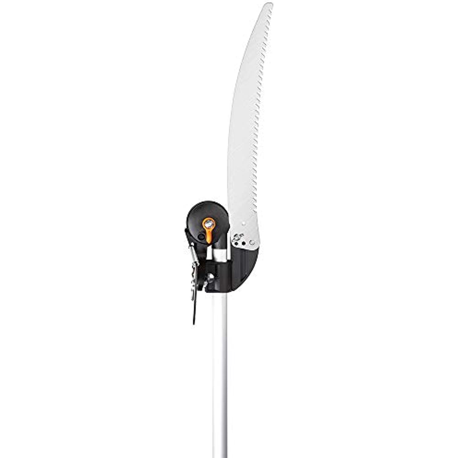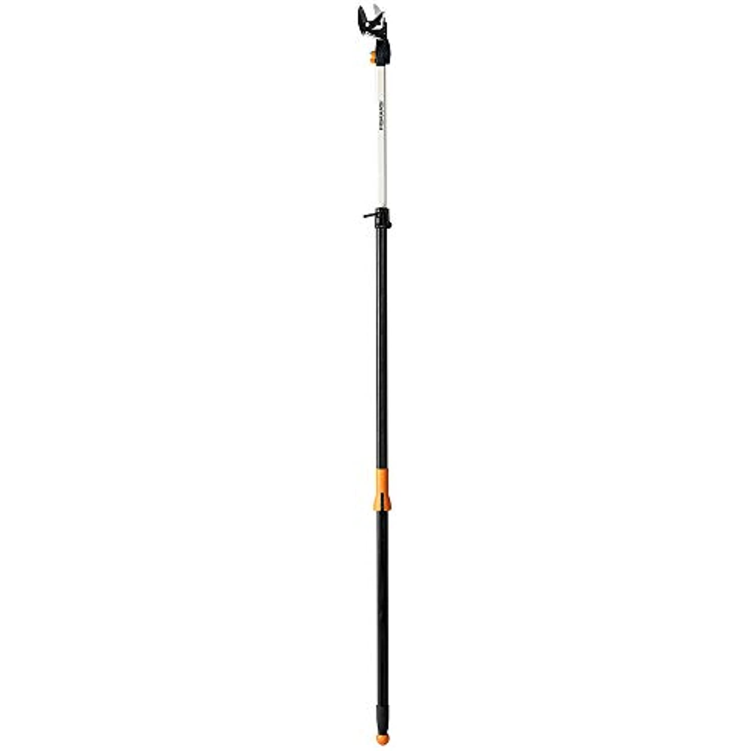 Amazon.com Versatile rope-free pruner makes it easy to reach high branches without a ladder or make low cuts without kneeling or bending. Prune high branches quickly and easily without climbing a ladder.Fiskar's innovative 9240 telescoping Pruning Stik Tree Pruner makes it easy to cut high or low with a level of control traditional pruners with exterior ropes can’t match. You can cut high branches without the hassles and dangers of using a ladder. In addition, you can make low cuts without sore knees from kneeling. The Pruning Stik will help prevent back strain from bending, and it easily reaches into dense, prickly shrubs or tight spots. The rope-free design means you can use both hands to maximize your power and accuracy, and an easy-to-grip sliding handle makes the pruning action smooth and simple. An actuating ball at the end of the shaft lets you reach even farther and still prune with precision, and the cutting head rotates up to 230-degrees to let you prune at tough angles. The Fiskar's 9240 telescoping version includes a 15-inch saw blade to take down thicker branches. The 9240 tree pruner extends to a full 12-foot. The Fiskars’ 9240 Pruning Stik includes a lifetime warranty.Ideal for pruning high branches without climbing a ladder, making low cuts without bending or kneeling or reaching into dense or prickly shrubsRope-free design gives you two-handed control and eliminates snags and tanglesPower-Stroke chain-drive gearing provides maximum cutting power Actuating ball at the end of the pole lets you extends your reach even fartherFully hardened steel pruning blade with a 1-Inch cutting capacity features a non-stick coating to resist rust and make cutting easierAdjustable cutting head makes it easy to prune at virtually any angle.. View larger. ; Prune low without back strain from bending or sore knees from kneeling. View larger.Rope-free design maximizes power and control. View larger.Quick-release thumb lock provides easy adjustment of the cutting head angle. . View larger. Product Description Fiskars Pruning Stik Tree Pruner makes it easy to cut high or low with a level of control traditional pruners with exterior ropes can’t match. A long, lightweight pole lets you cut high branches without the hassles and dangers of using a ladder, make low cuts without sore knees from kneeling or back strain from bending and easily reach into dense, prickly shrubs or tight spots. For the reach you need to cut your highest branches, the pole extends all the way to 12 foot and locks securely. The rope-free design means you can use both hands to maximize your power and accuracy, and an easy-to-grip sliding handle makes the pruning action smooth and simple. An actuating ball at the end of the pole lets you reach even farther and still prune with precision, an included 15 inch saw blade makes it easy to take down thicker branches, and the cutting head rotates up to 230 degrees to let you prune and saw at tough angles. The fully hardened, precision-ground blade stays sharp, and a low-friction, rust-resistant coating makes every cut easier.