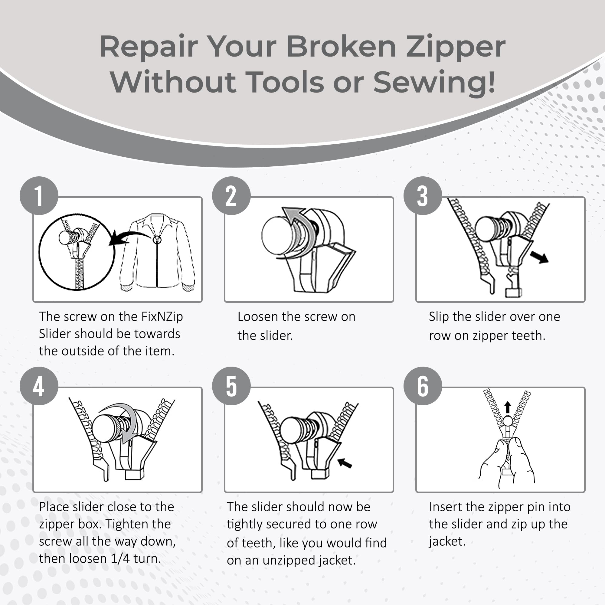 - NO TOOLS OR SEWING REQUIRED: Fix zip isn’t your average zipper repair kit. It’s a replacement zipper slider that you can install without tools or sewing. Anyone can do it! You'll have your zipper handle in best condition in no time!