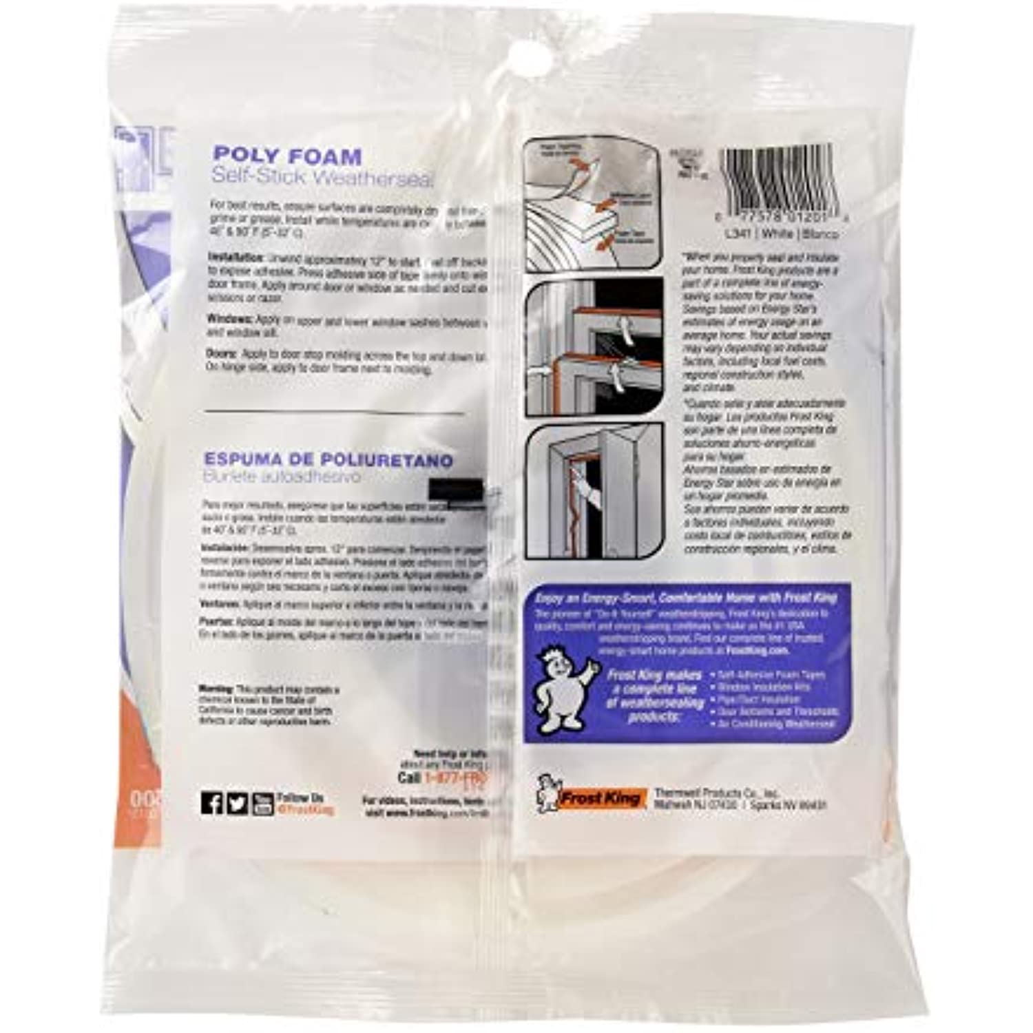 Product Description Frost King L341H Polyurethane Foam Tape 3/8-inch wide by1/4-Inch tall by17 feet long, White From the Manufacturer Frost King Polyurethane Foam Tape has an open cell for maximum compression. A highly compressible self-stick tape designed for interior use. The tape squeezes down to fill very narrow gaps. Manufacturer Contact Information 1-800-526-5265