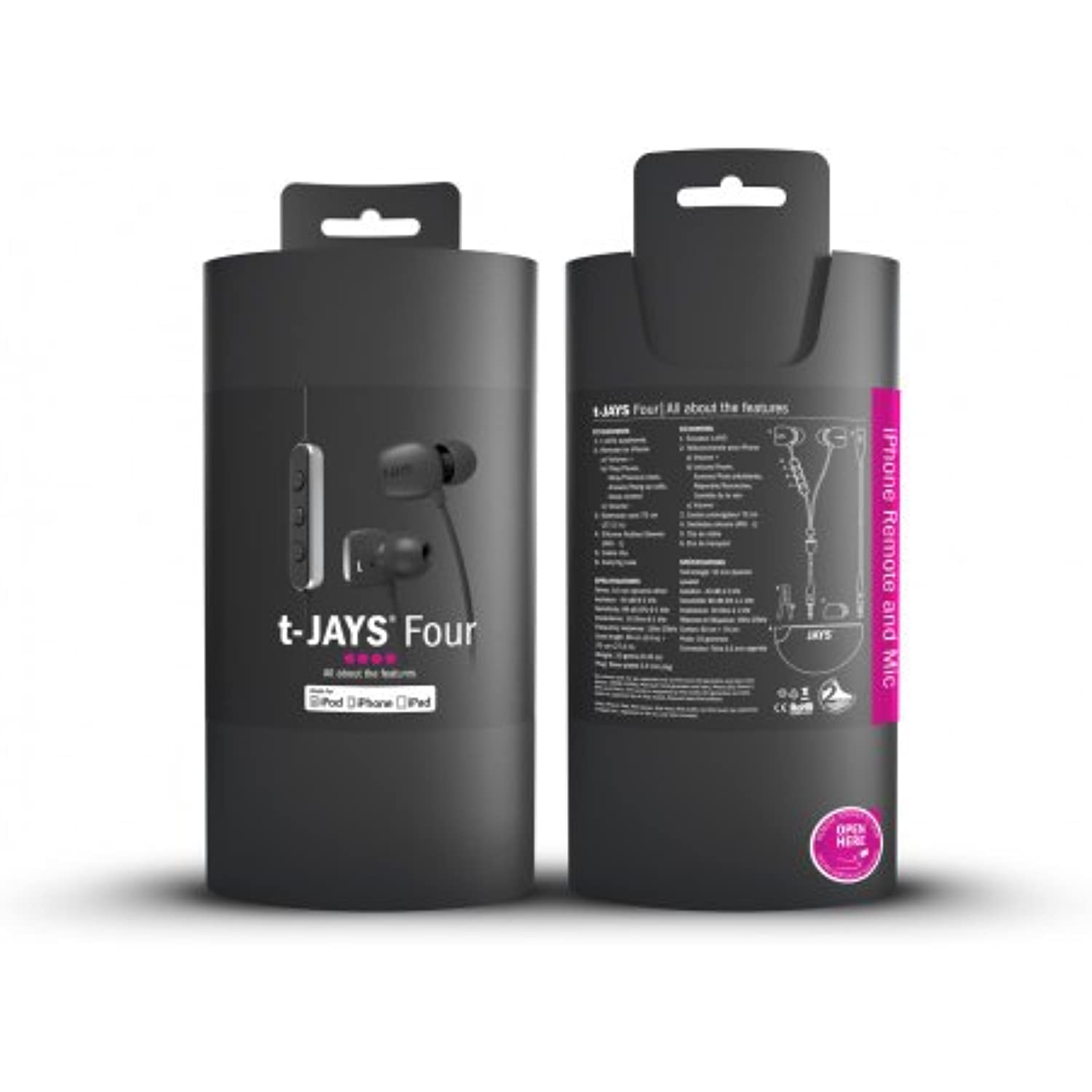 JAYS T00079 Four High Fidelity Earphones with 3-Button Remote for iPhone 4 - Retail Packaging - Black