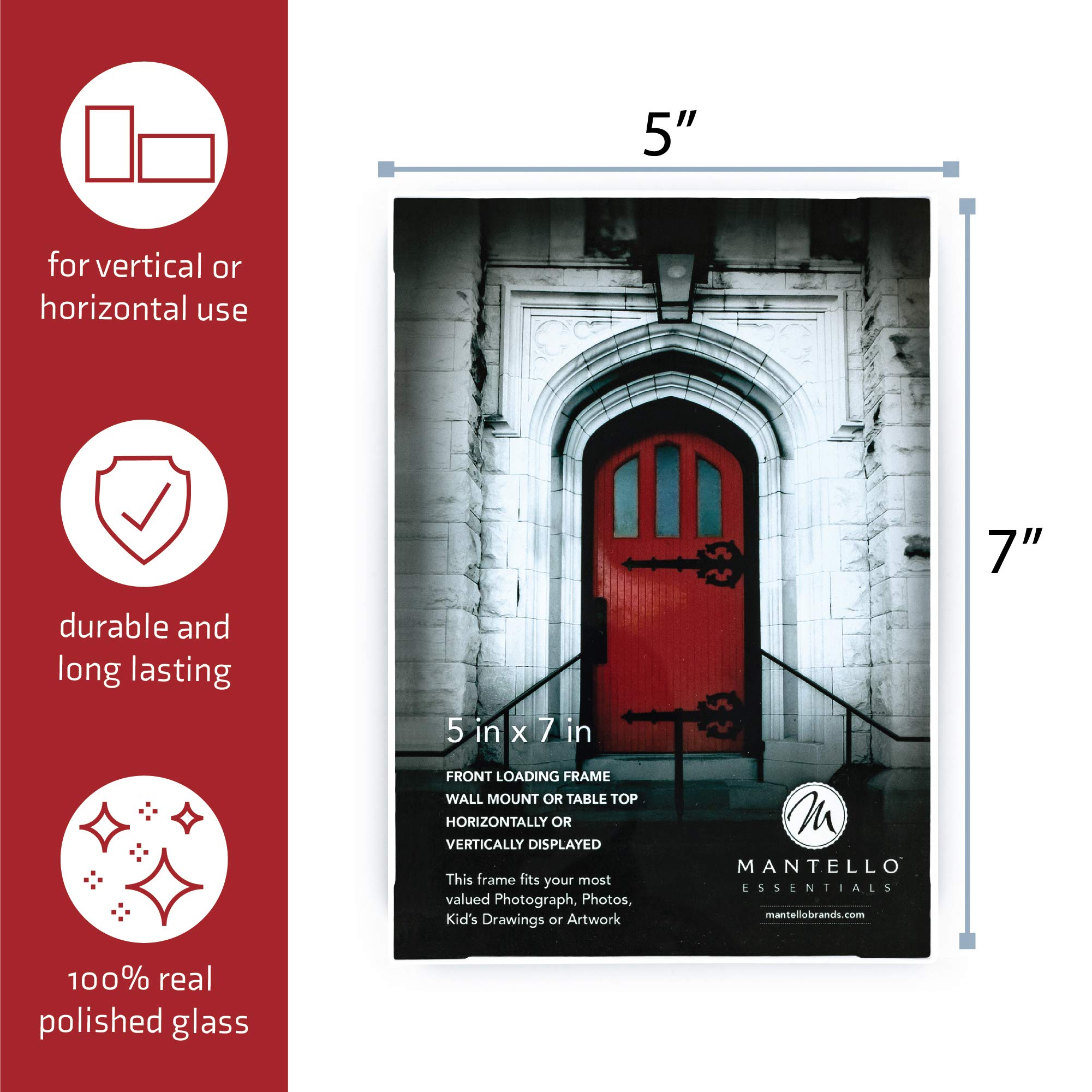 - The Mantello picture frame 5x7 set can be easily hung on your walls or it can be displayed on a tabletop surface with the snap on easel. It supports vertical and horizontal placements.