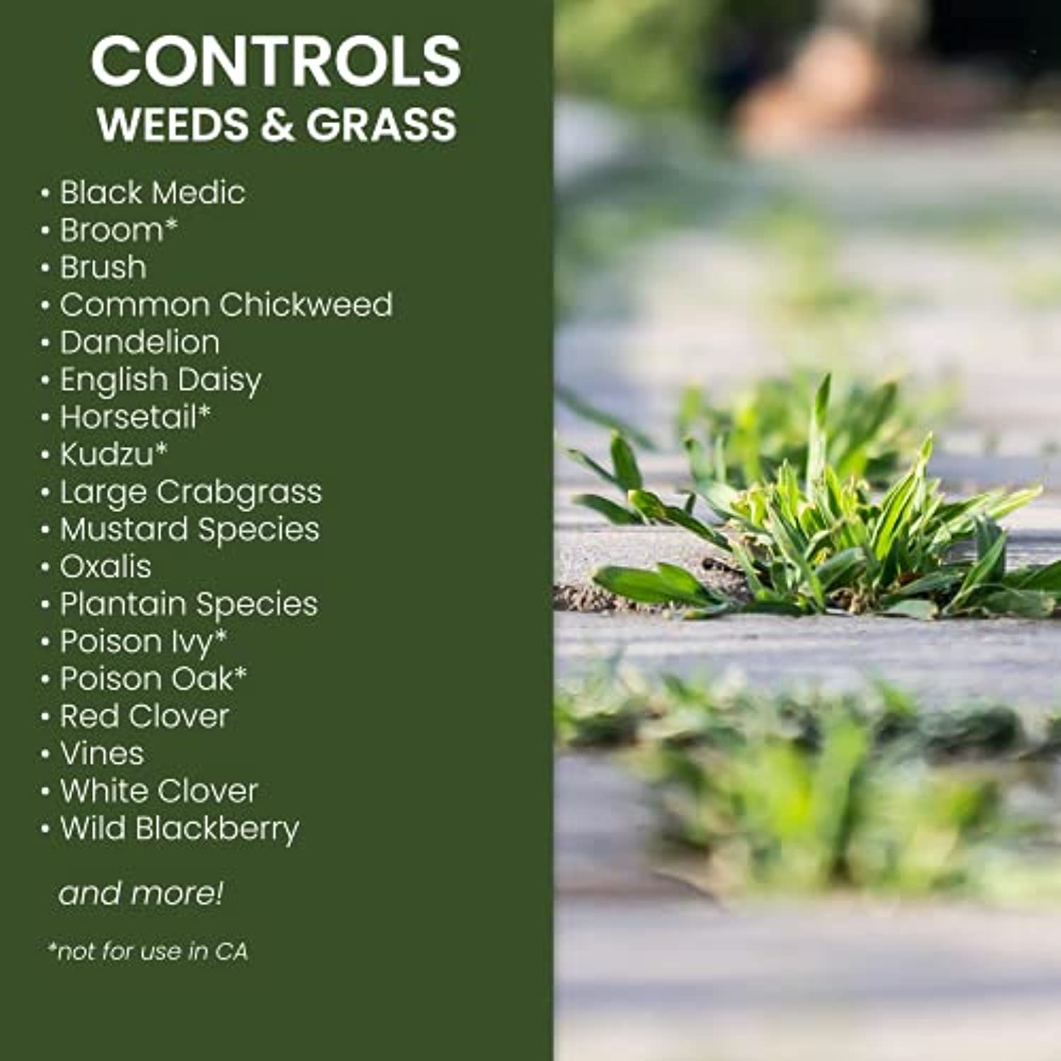 - WEED KILLER: Non-selective herbicide kills listed weeds and grasses including crabgrass, posion ivy, clover, and more