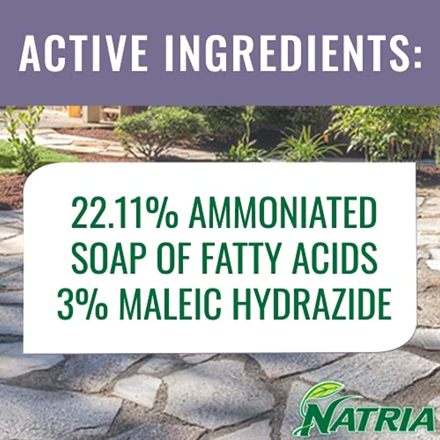 Finally, a natural way to kill unwanted grass and weeds to their roots with Natria Grass and Weed Control with Root Kill technology. This fast acting formula makes for a great herbicide to use around the home. The non-selective herbicide kills listed weeds and grasses down to the root including crabgrass, poison ivy, clover, and more. Start seeing visual results in as little as 24 hours. This non-staining formula can be applied on driveways, stepping stones, patios, and more. The concentrate is easy to use; simply mix and spray. Ensuring the foliage is wet is important. Natria Grass and Weed Control measures 32-ounces and treats up to 600 feet. Active Ingredients: 22.11% Ammoniated soap of fatty acids; 3% Maleic hydrazide. EPA Registration Number: 67702-19-92564.