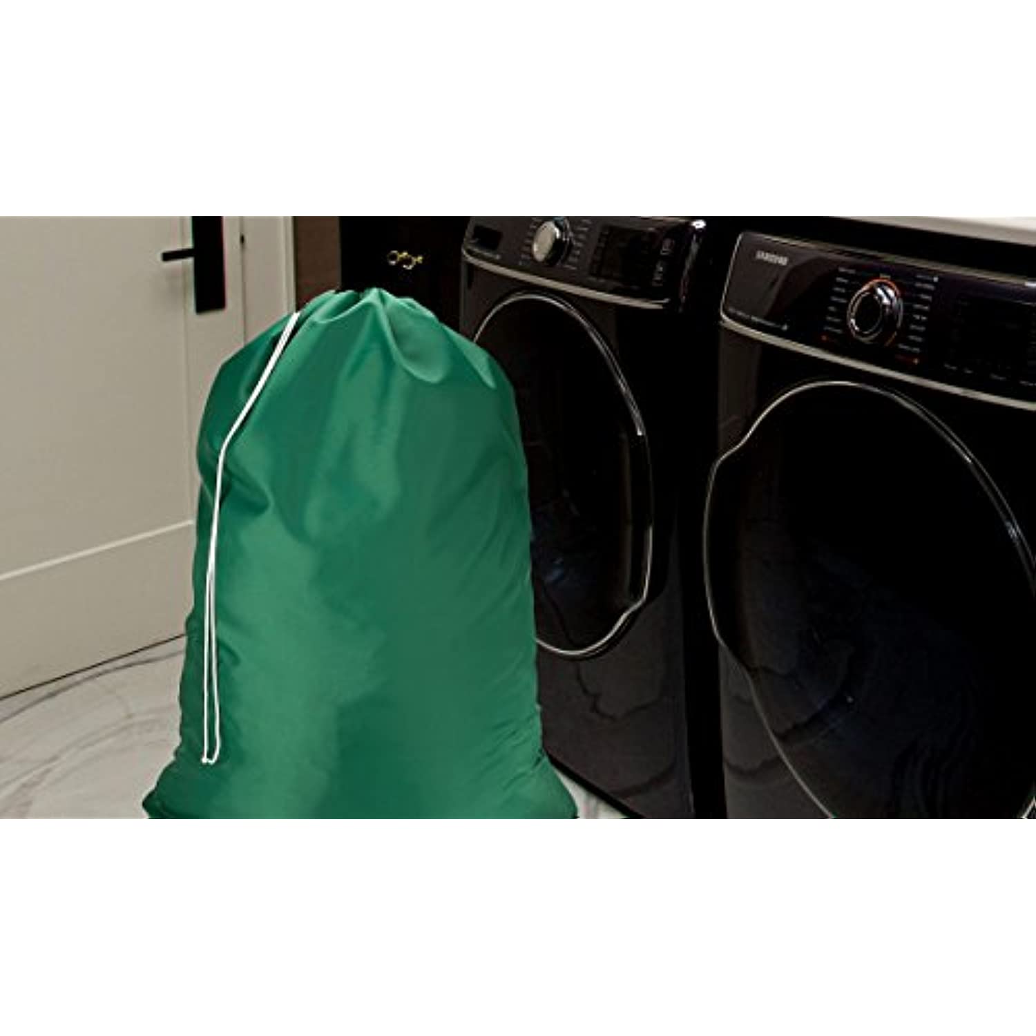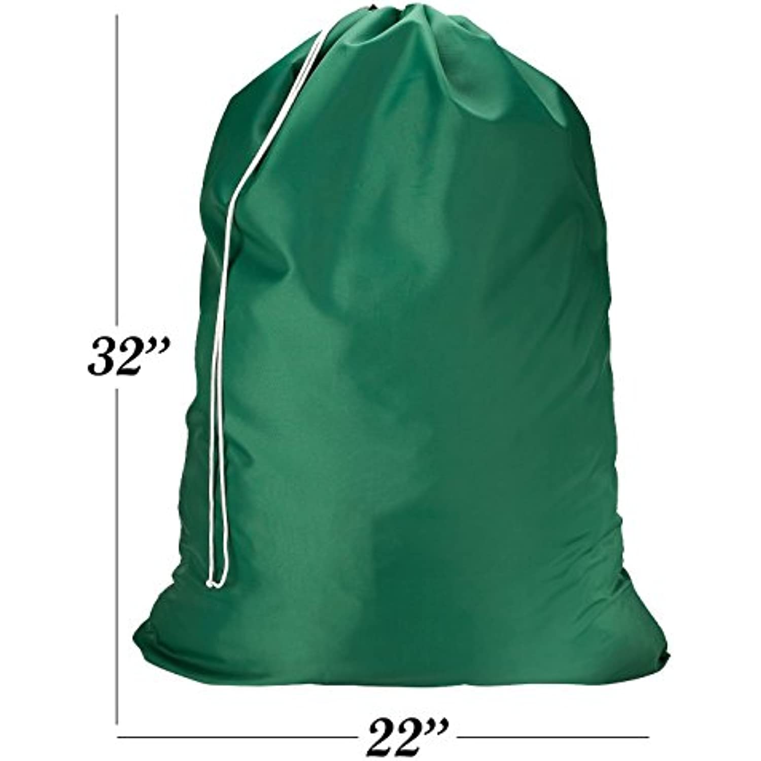 Whether youre a college student who has to transport your laundry to the dorm washer or take it home to mom; or you live in an apartment and want to drop your laundry off at the laundromat, you have to get it there without losing anything. Thats why this heavy duty nylon laundry bag will work for you. Its made of 100 percent breathable nylon, and holds up to three loads of laundry (approximately 60 pounds). The nylon laundry bag is a brightly colored and attractive Green. Its nylon construction helps to protect your clothes from the elements and easily transport your laundry. And just as important, its durability makes it rip- and tear-resistant. It also has a locking drawstring closure so you never have to worry that it will open and spill out your personal items. Further, these large laundry bags are machine washable, so you can reuse it over and over again, just adding it to the laundry when it seems to be getting a little dirty. Its an ideal bag for college, dorm and apartment dwellers or anyone who prefers a bag to a laundry basket.