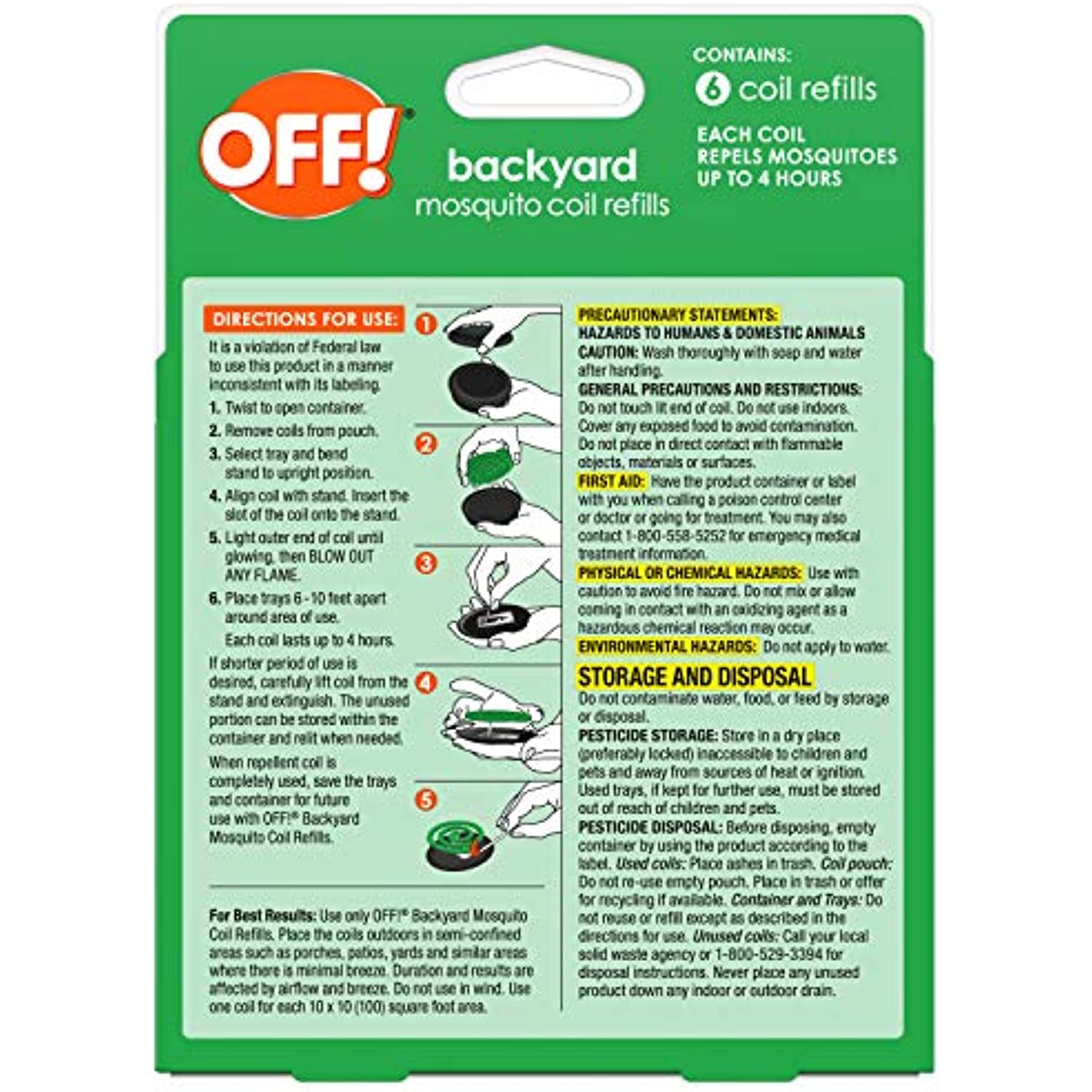 - Entertain on the patio or just have uninterrupted fun in your backyard with OFF! Mosquito Coil