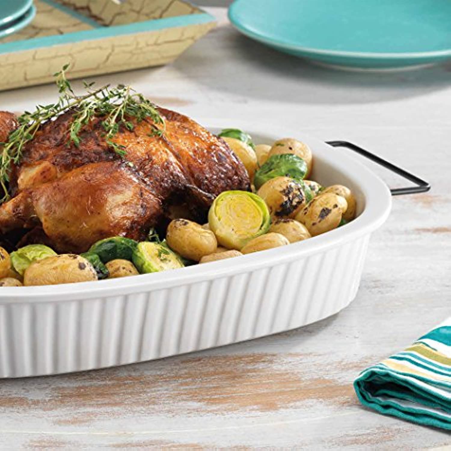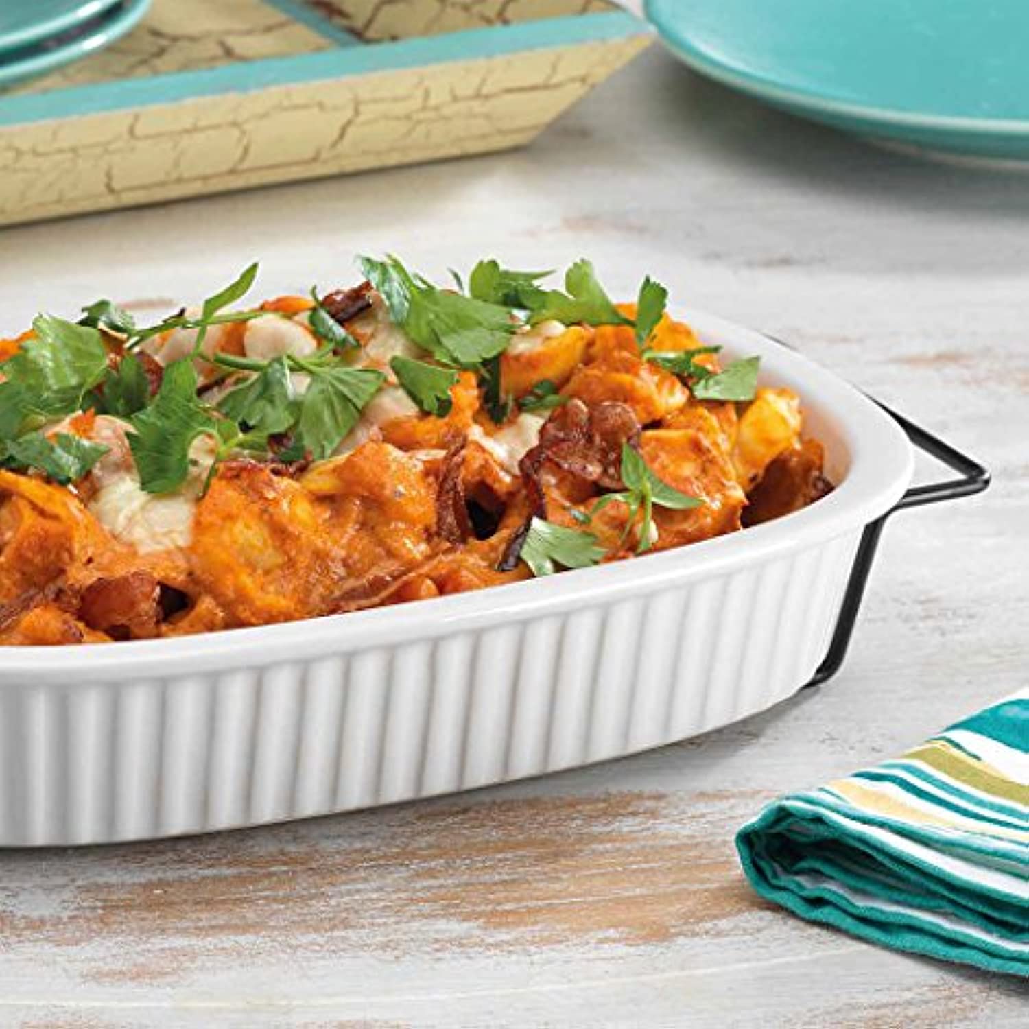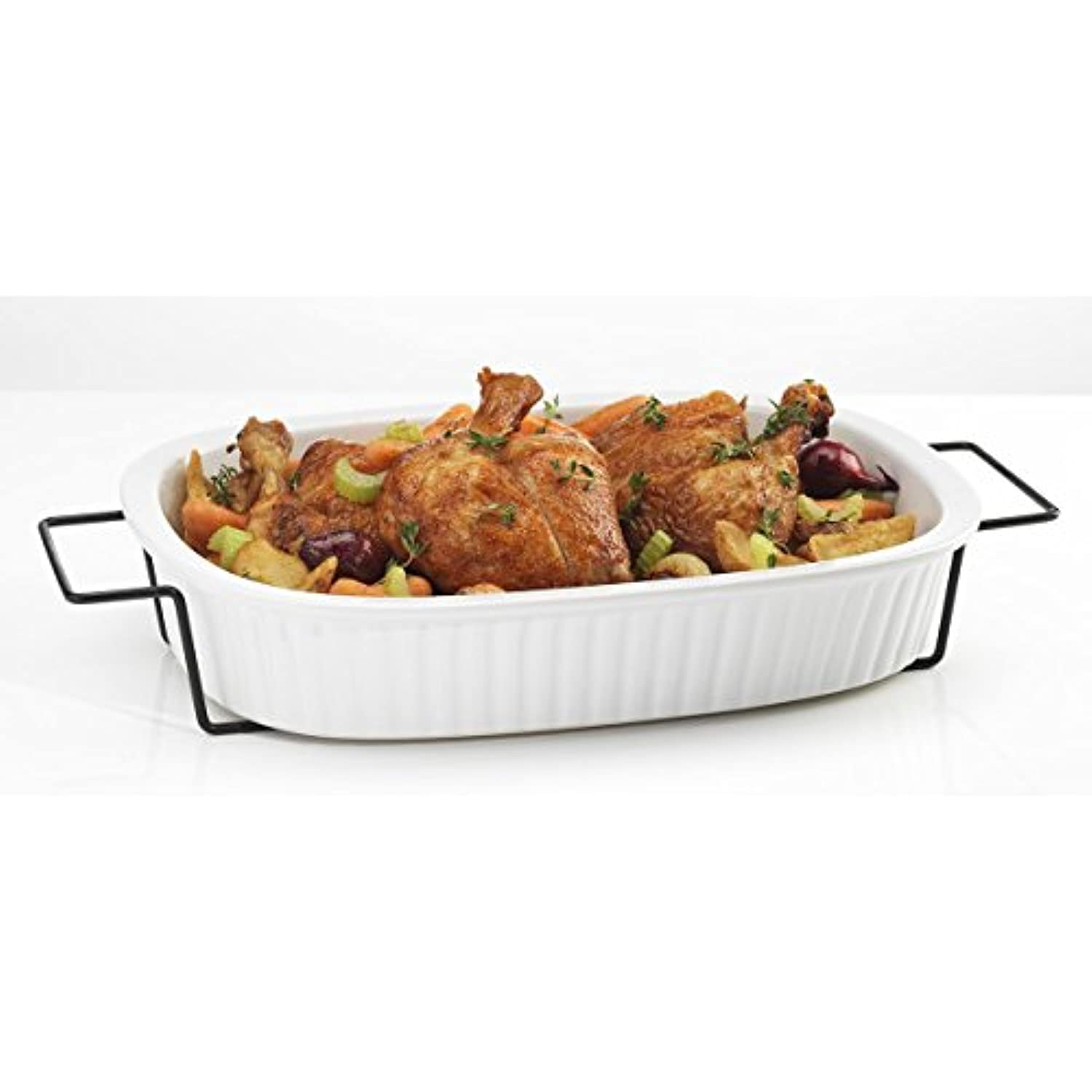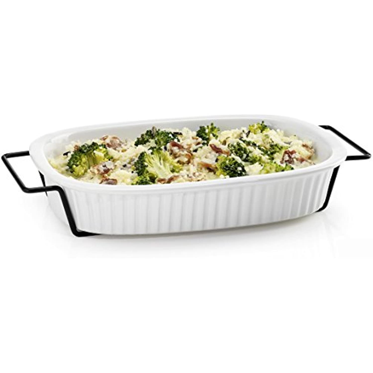 Oven to Table White Casserole Porcelain Baking Dish with Iron Rack, Nonstick Large Rectangular Meal Prep Cookware Dish, 1-Quart Baker Ovenproof Pan
