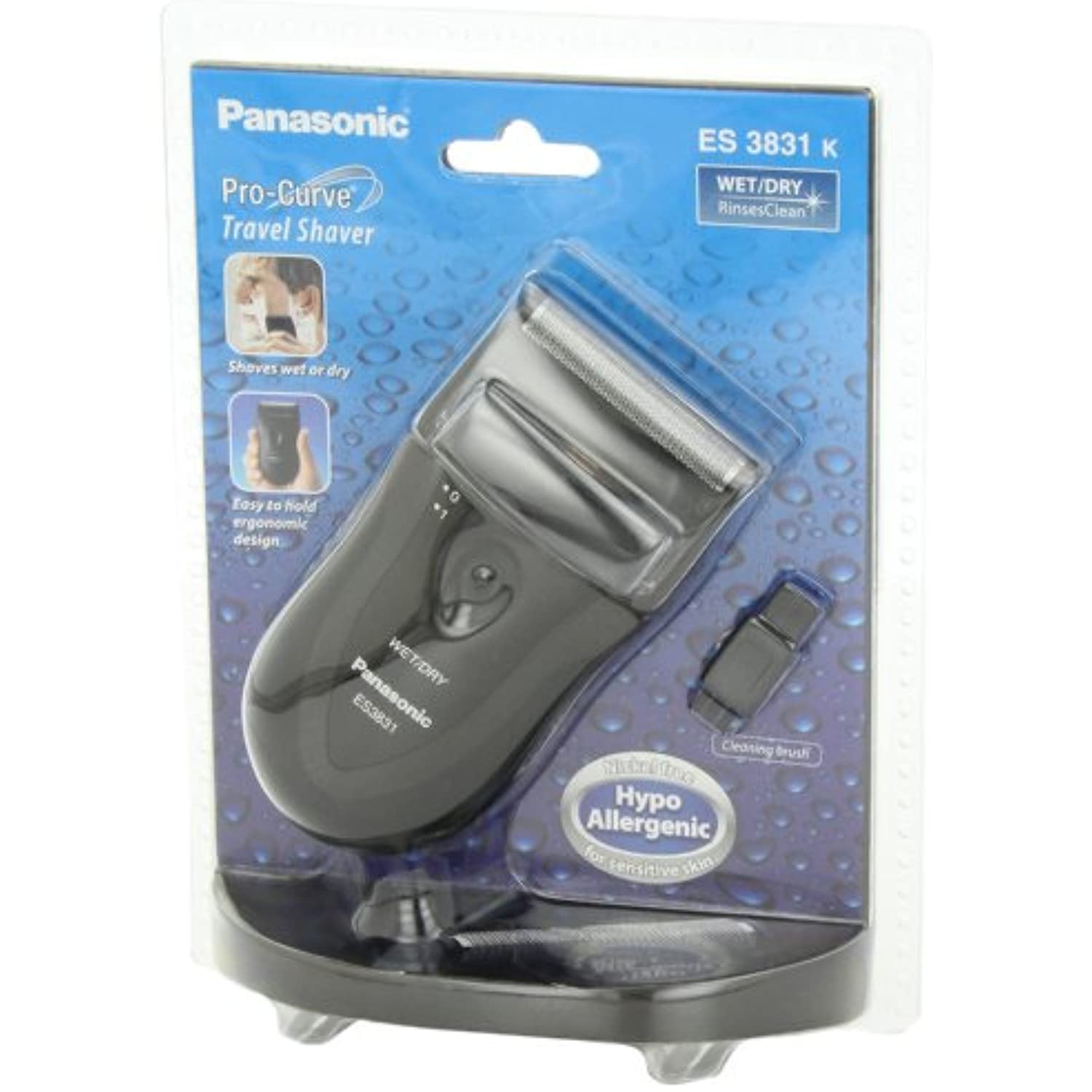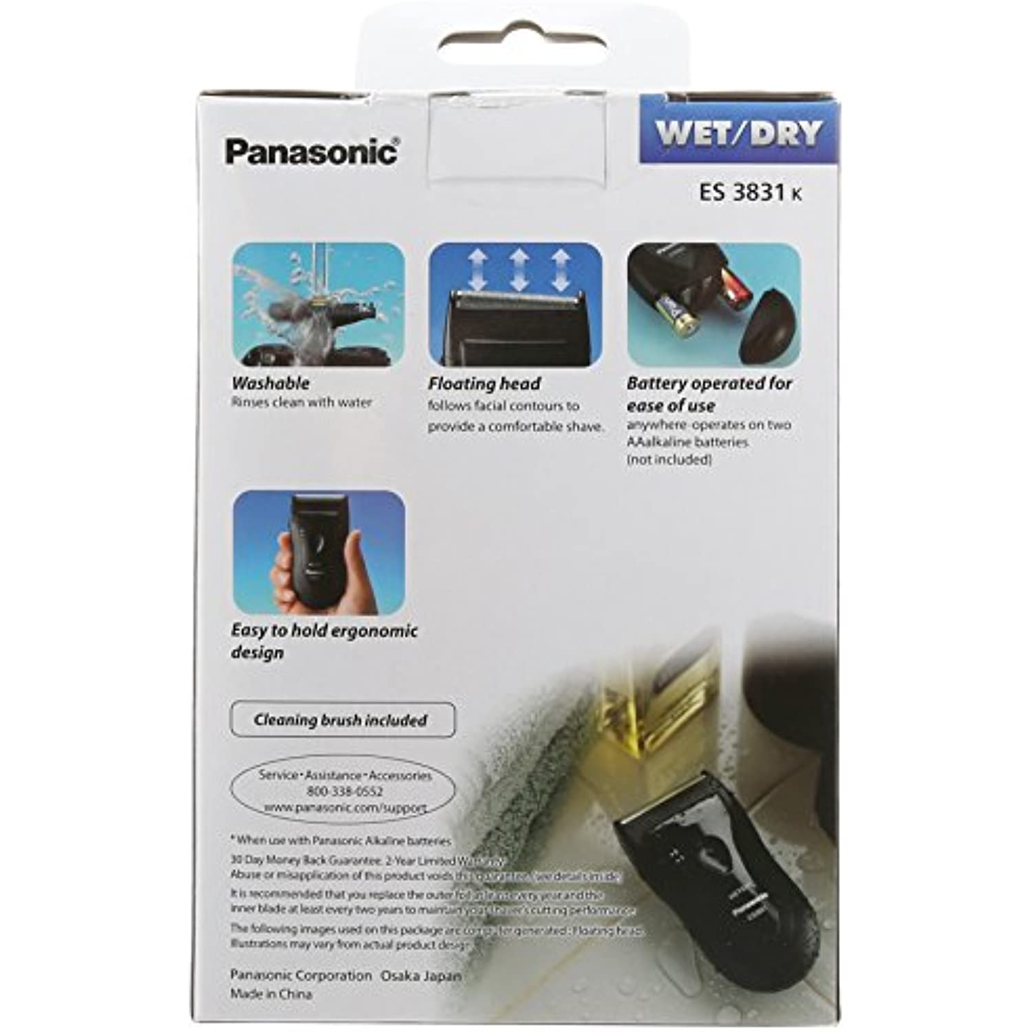 Weighing less than six ounces, the reliable, high-quality Panasonic ES3831K Electric Wet Dry Travel Shaver for Men is the perfect choice for those who want quick, clean, and convenient shaving anytime, anywhere. Specially designed for close, comfortable results, this portable, precision men's electric travel razor is driven by a durable 8500-rpm motor drive to ensure fast, evenly distributed shaver power. Even on the most sensitive skin types, this shaving machine for men uses floating, hypo-allergenic stainless-steel blade to ensure a safe, non-irritating shave. A floating micro-thin, stainless-steel foil closely traces the individual contours of the face for smooth, even electric razor shaving. This wet dry shaver is fully immersible and 100% washable, too, so it's ideal for shaving dry on the go, or in the shower with or without foam or gel. To clean your travel electric razor, just hold the shaver under warm, running water for a quick, thorough rinsing. A handy shaver maintenance brush is included to loosen and remove stubborn foam, gel and stubble and help keep the razor blade in pristine condition. The Panasonic ES3831K electric shaver less than six ounces and has a comfortable, ergonomic profile that fits naturally in either hand. The travel shaver is powered by two AA alkaline batteries (not included).FEATURES