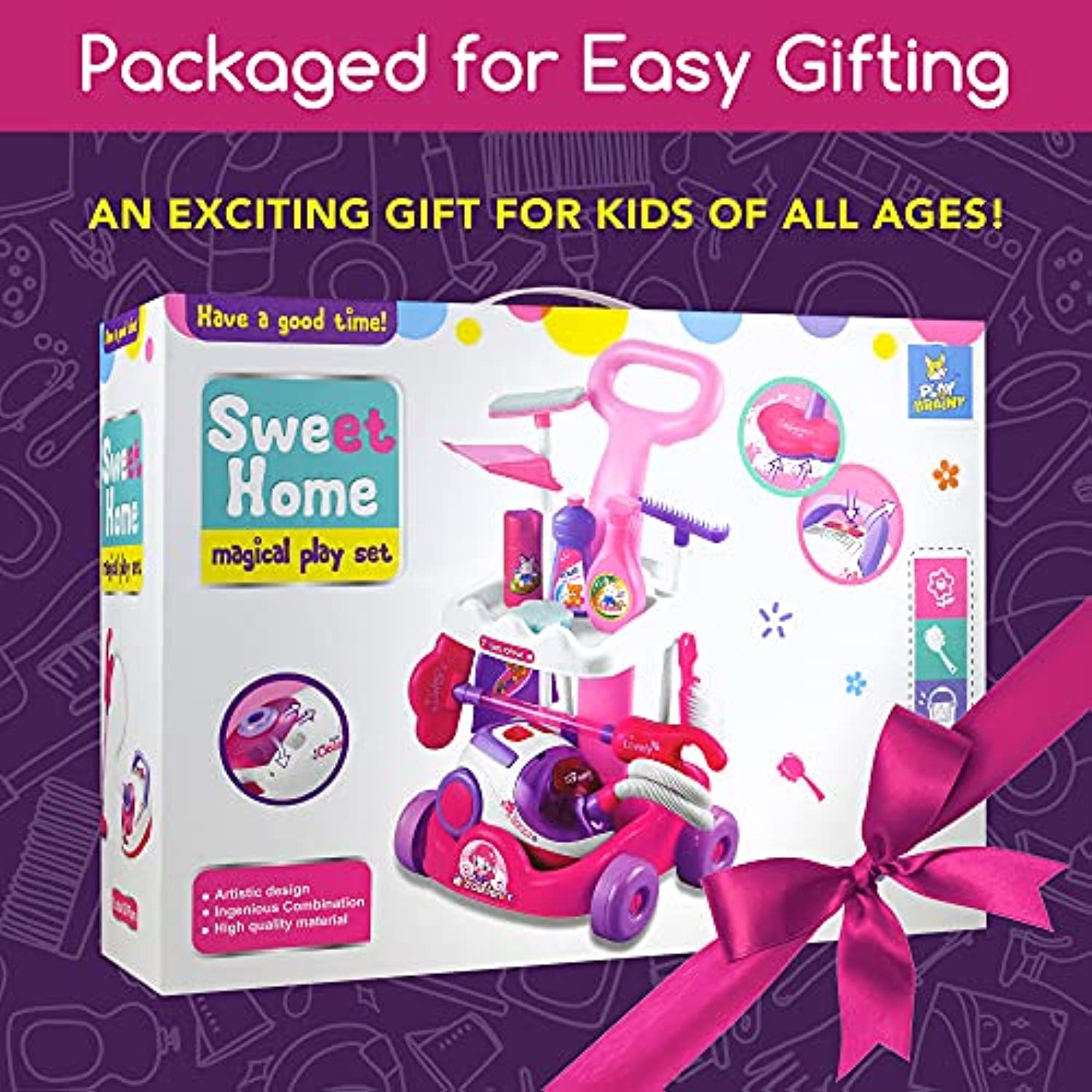 Play Brainy Magical Play Set for Kids with Toy Vacuum Cleaner, Mop, Broom, Sponge, Dustpan, and Pretend Cleaning Toys, Interactive Early Learning Fun with Real Suction