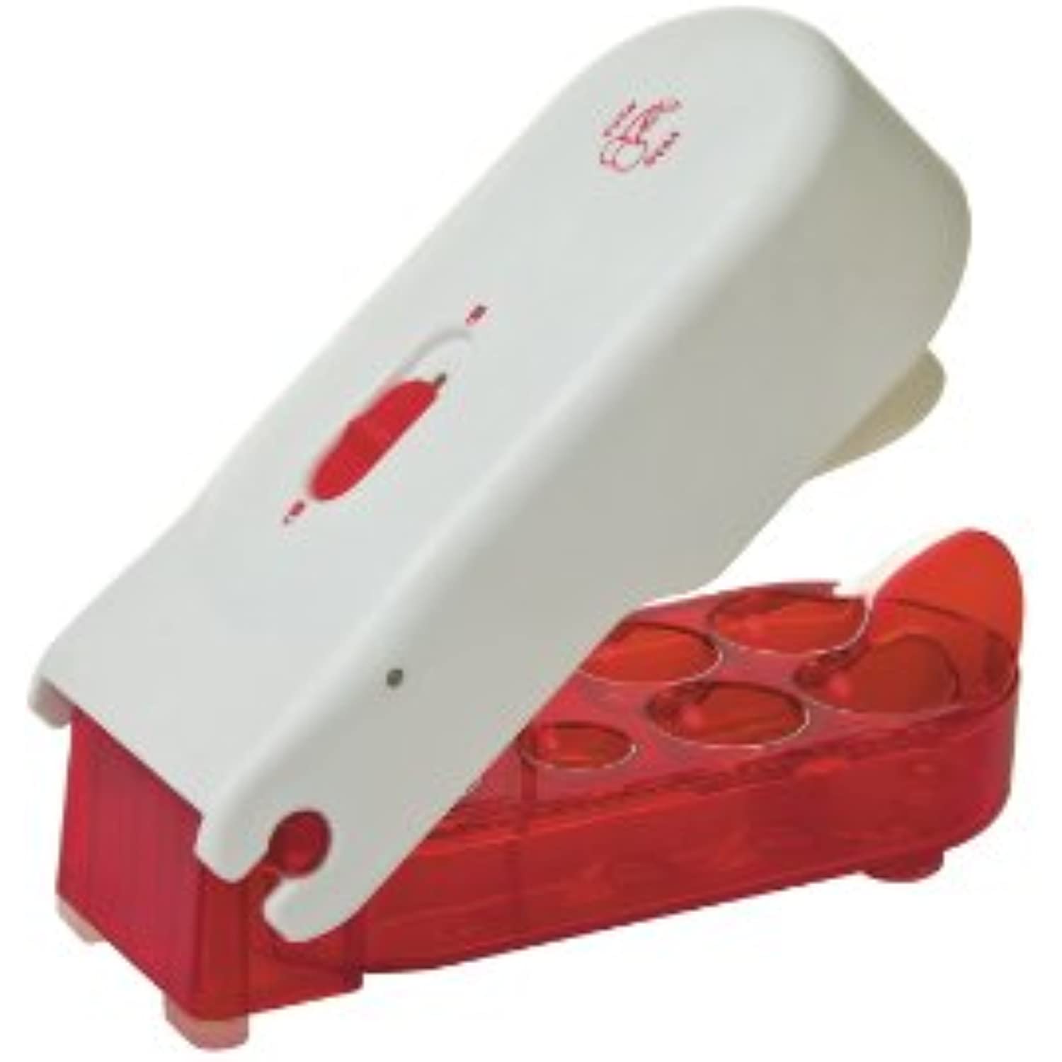 - SIMPLE TO USE: Easily Press Down with little effort to quickly pit up to 4 cherries at once and the pits drop into the red base container that captures all the juice