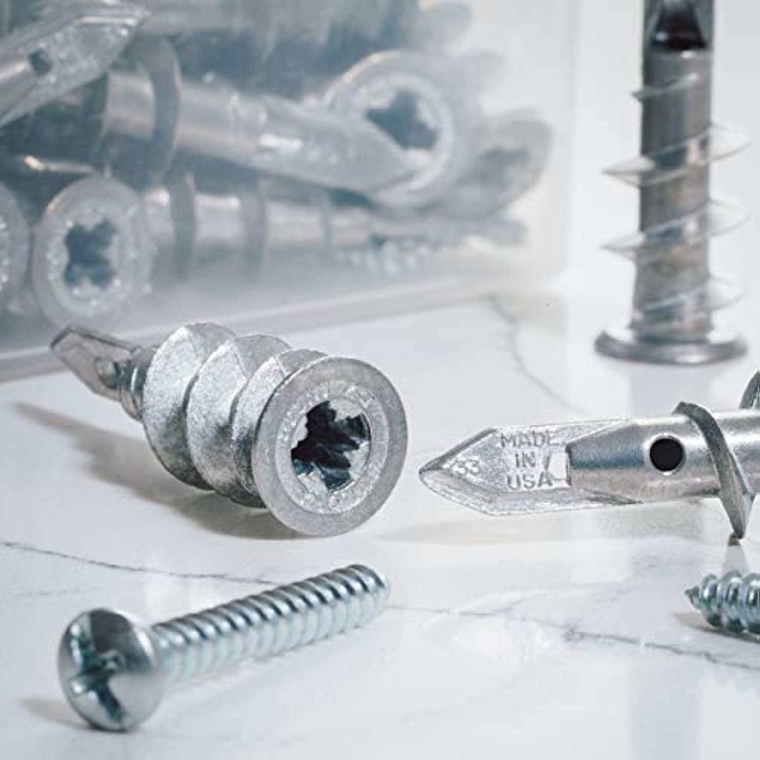 Qualihome Heavy Duty ZINC Self Drilling Drywall Anchors and Screws Kit | Includes 50 Drywall Anchors, 50 #8 1-1/4 Inch Screws & Reusable Storage Case | Anchors are Made in The USA