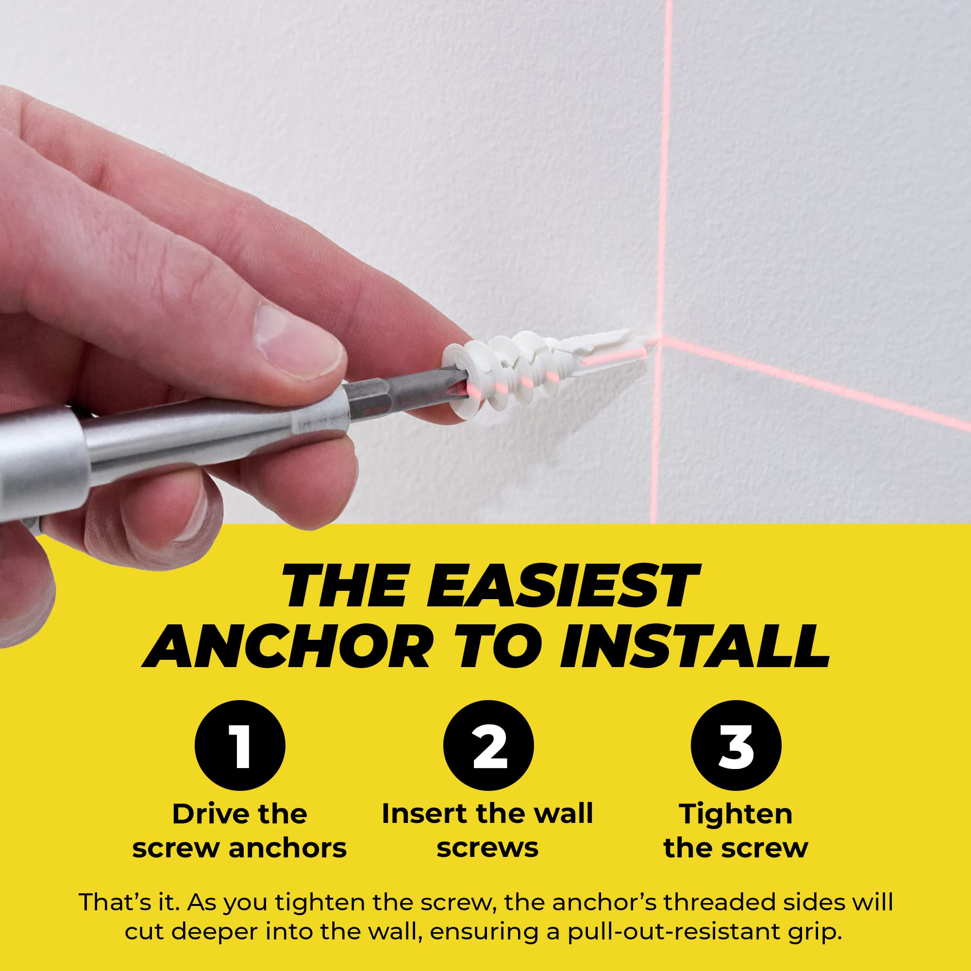 - Self-drilling anchor screws have a deep thread design that ensures a secure grip on drywalls or sheetrock of varying thicknesses (3/8", 1/2", and 5/8").