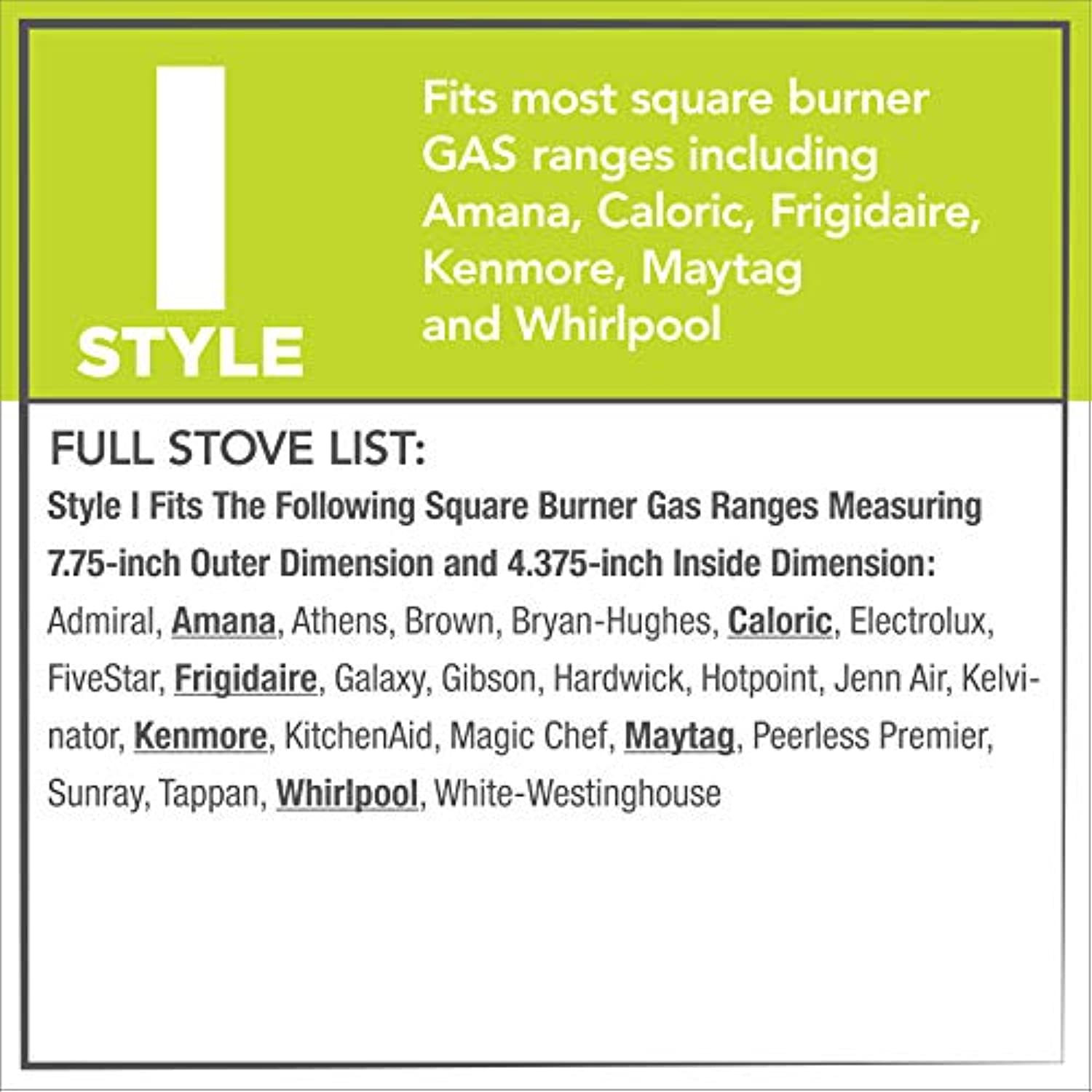 - Fits most ranges with large, square gas pans