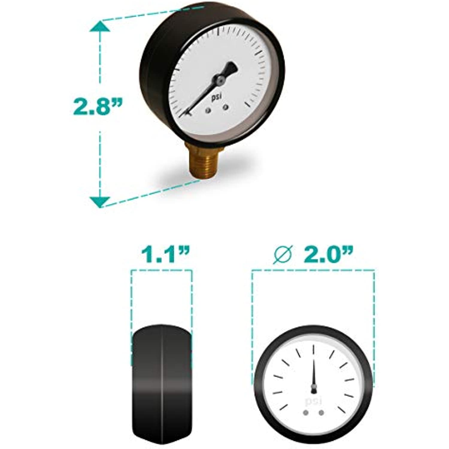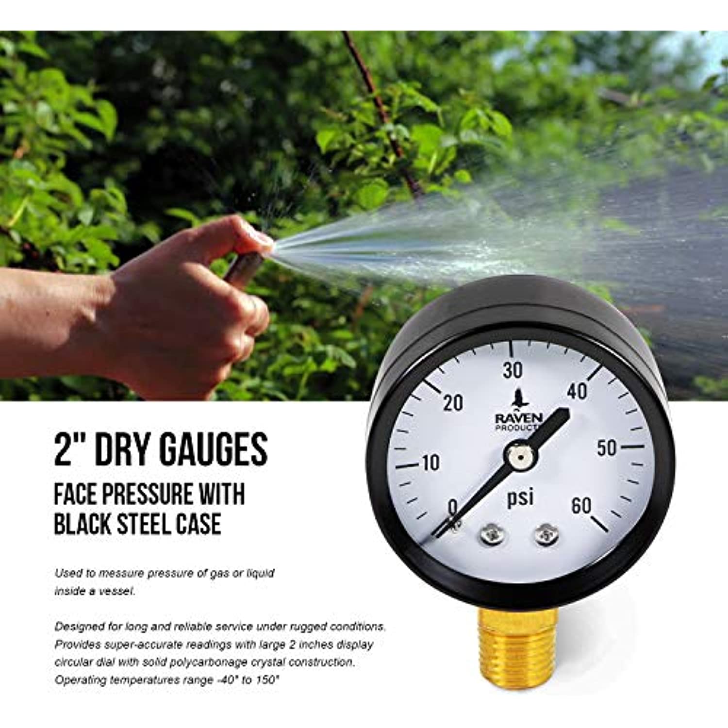 Raven PG260 R1522 2 inch Display Dry Gauges Steel Case, 1/4 inch Npt Center Back Connection, Circular Dial, Polycarbonate Crystal, Black Anodized Aluminum Pointer, and Durability, 60 PSI