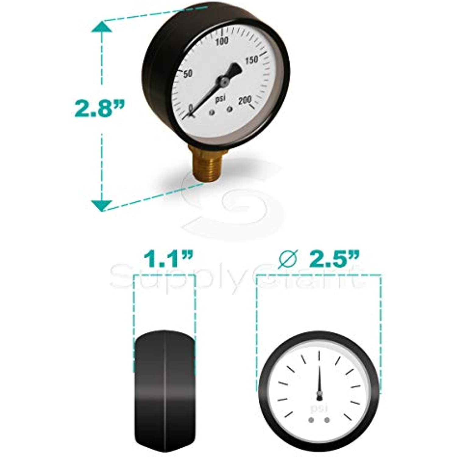 - 2-1/2 inch dry gauge, 1/4 inch NPT male threaded lower mount